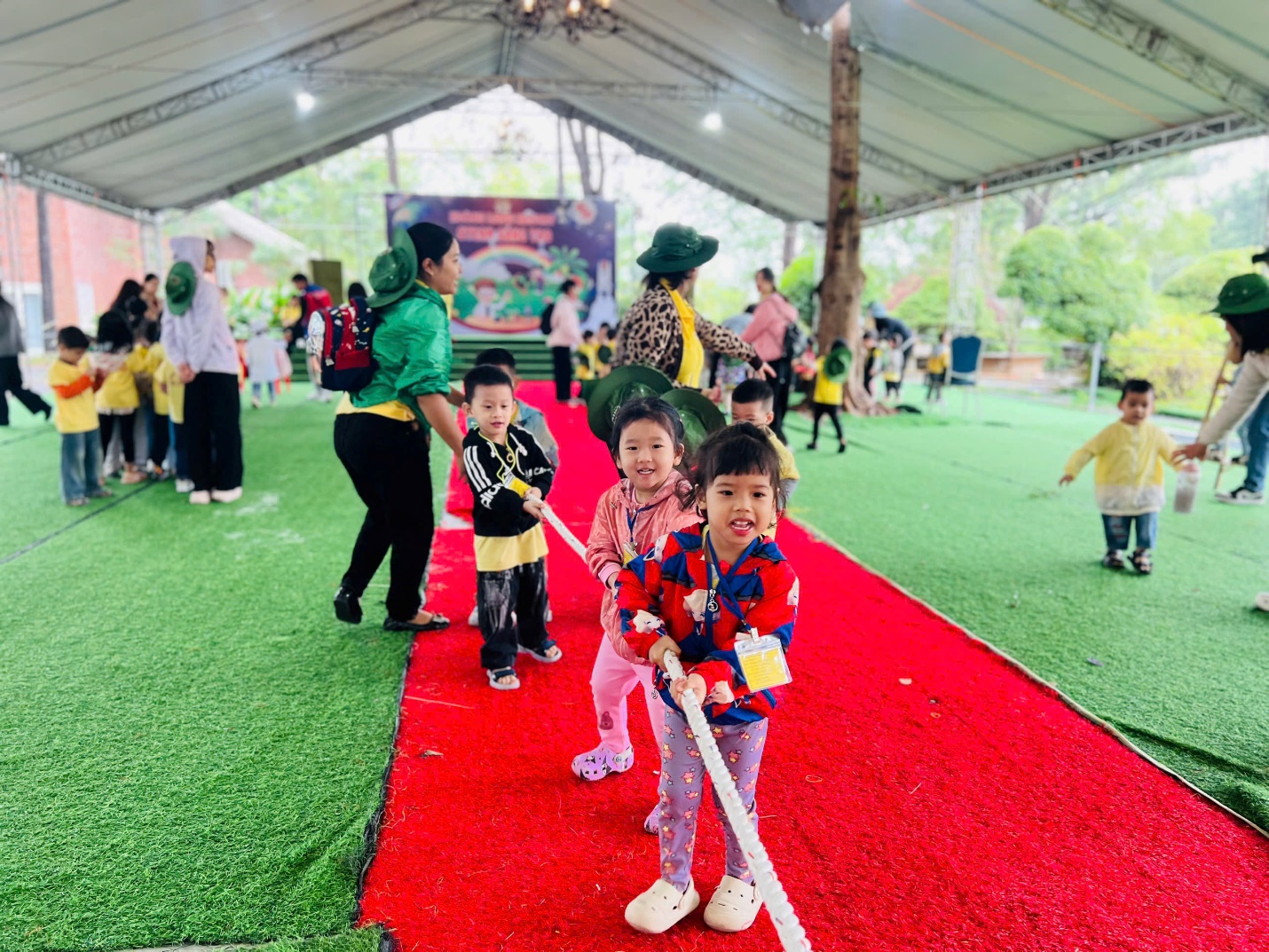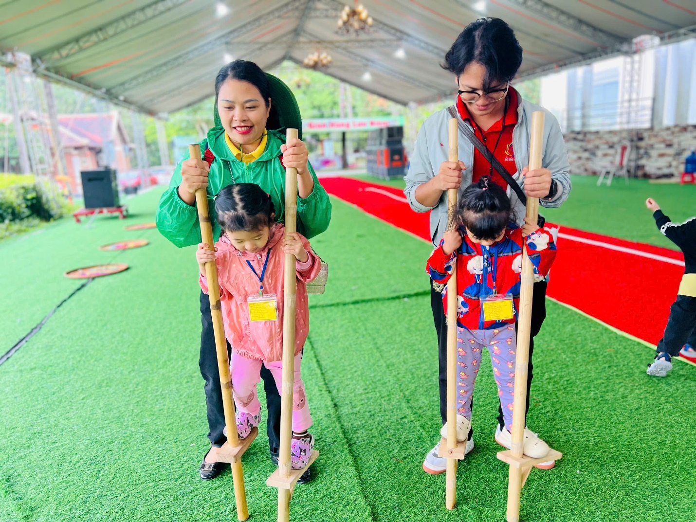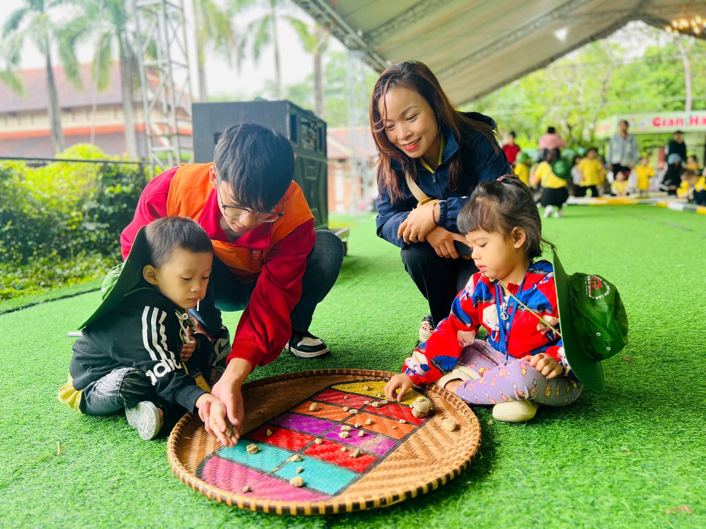 🎯 Và còn rất nhiều trò chơi vui nhộn khác như “khám bệnh cho bé”; “nặn bánh trôi”;….… khiến cả khu vực rộn vang tiếng hò reo, cổ vũ của các “vận động viên nhí”.