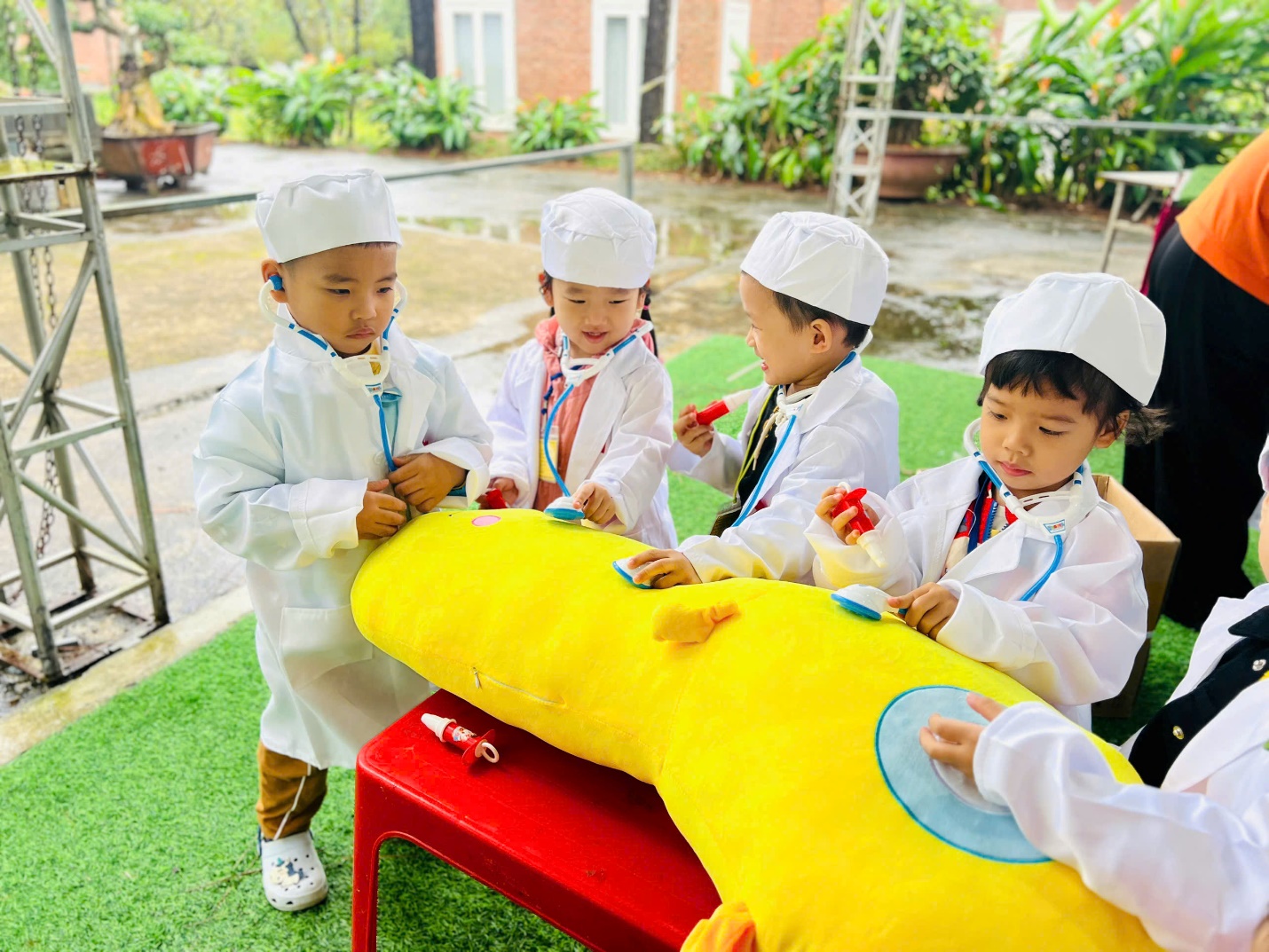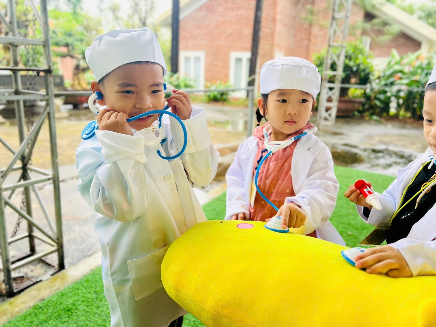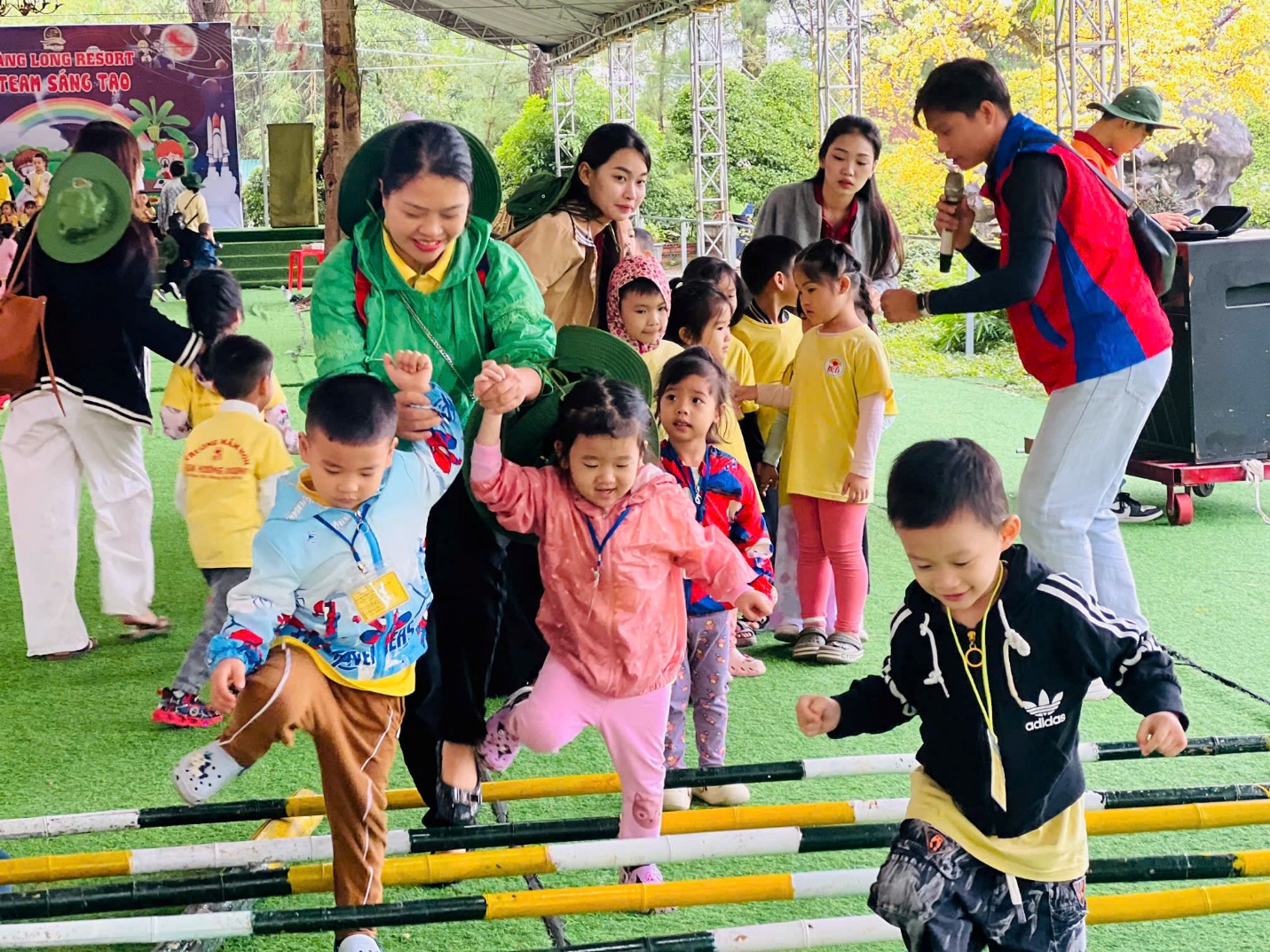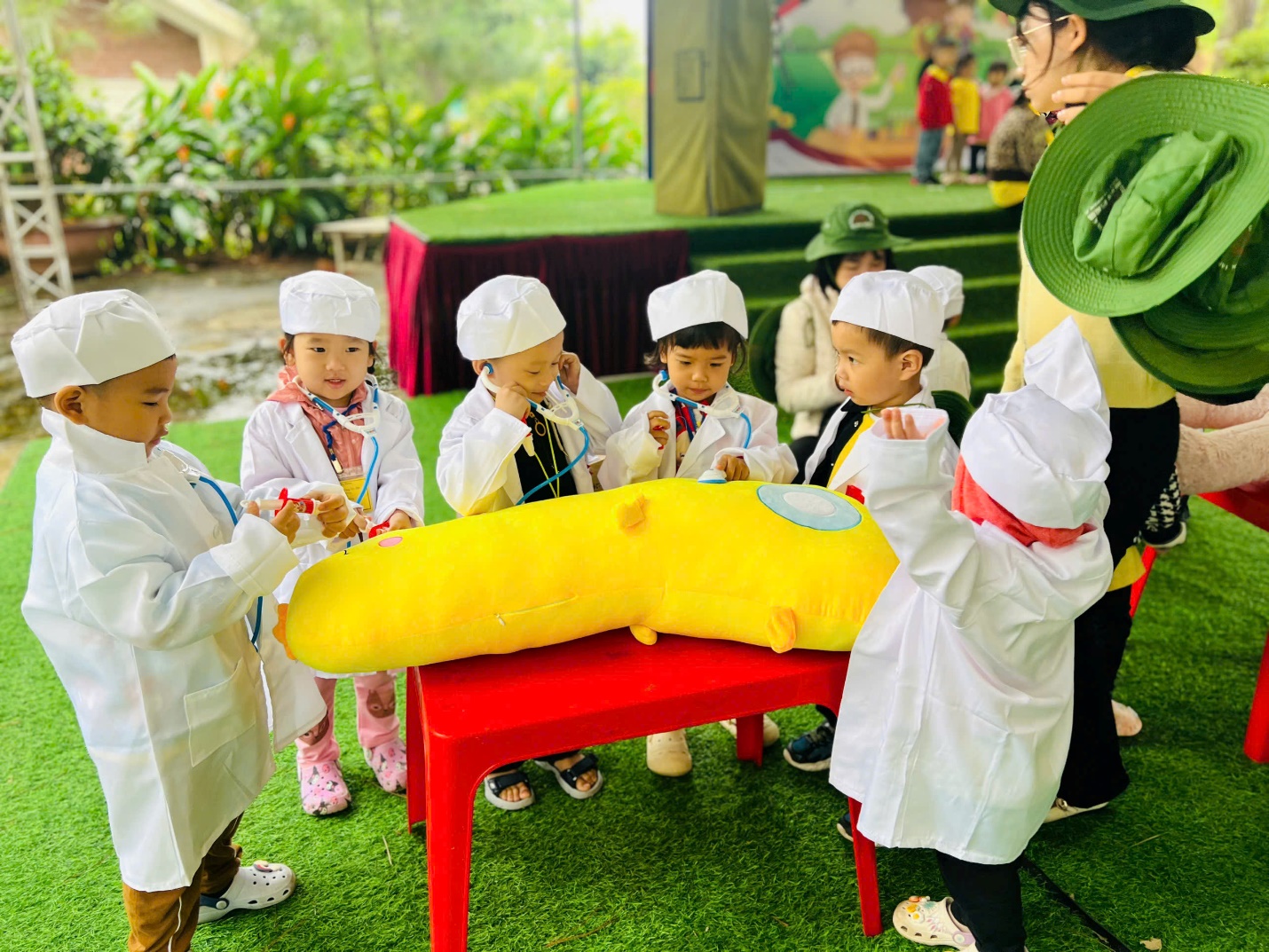 🎯 Và còn rất nhiều trò chơi vui nhộn khác như “khám bệnh cho bé”; “nặn bánh trôi”;….… khiến cả khu vực rộn vang tiếng hò reo, cổ vũ của các “vận động viên nhí”.