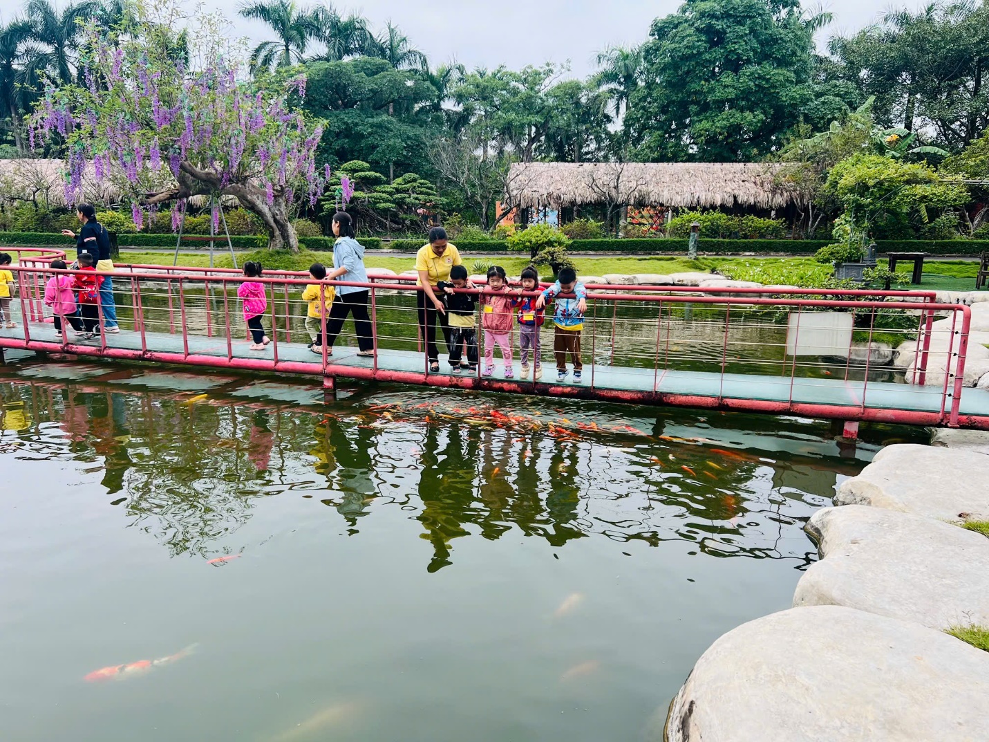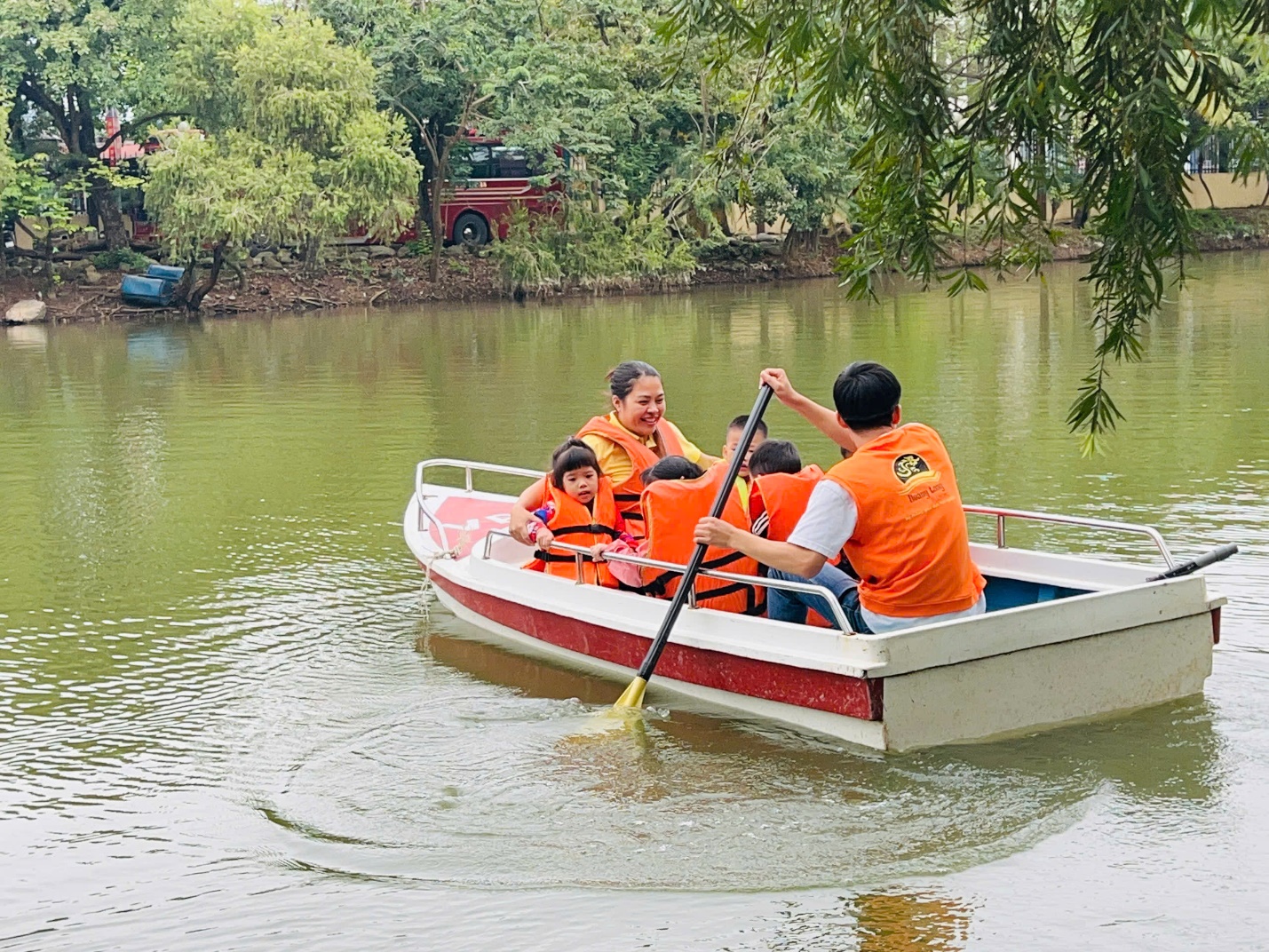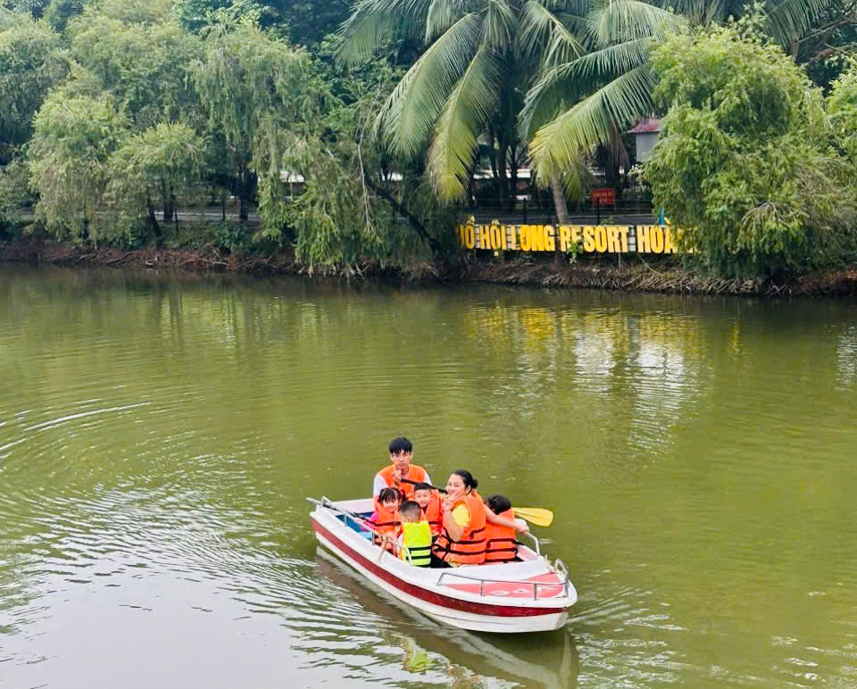 🚣♀️ Đi thuyền trên hồ – mỗi bạn đều được mặc áo phao cẩn thận, cùng cô ngồi thuyền dạo quanh mặt nước trong xanh, ngắm cảnh và cảm nhận không khí mát lành của thiên nhiên.
