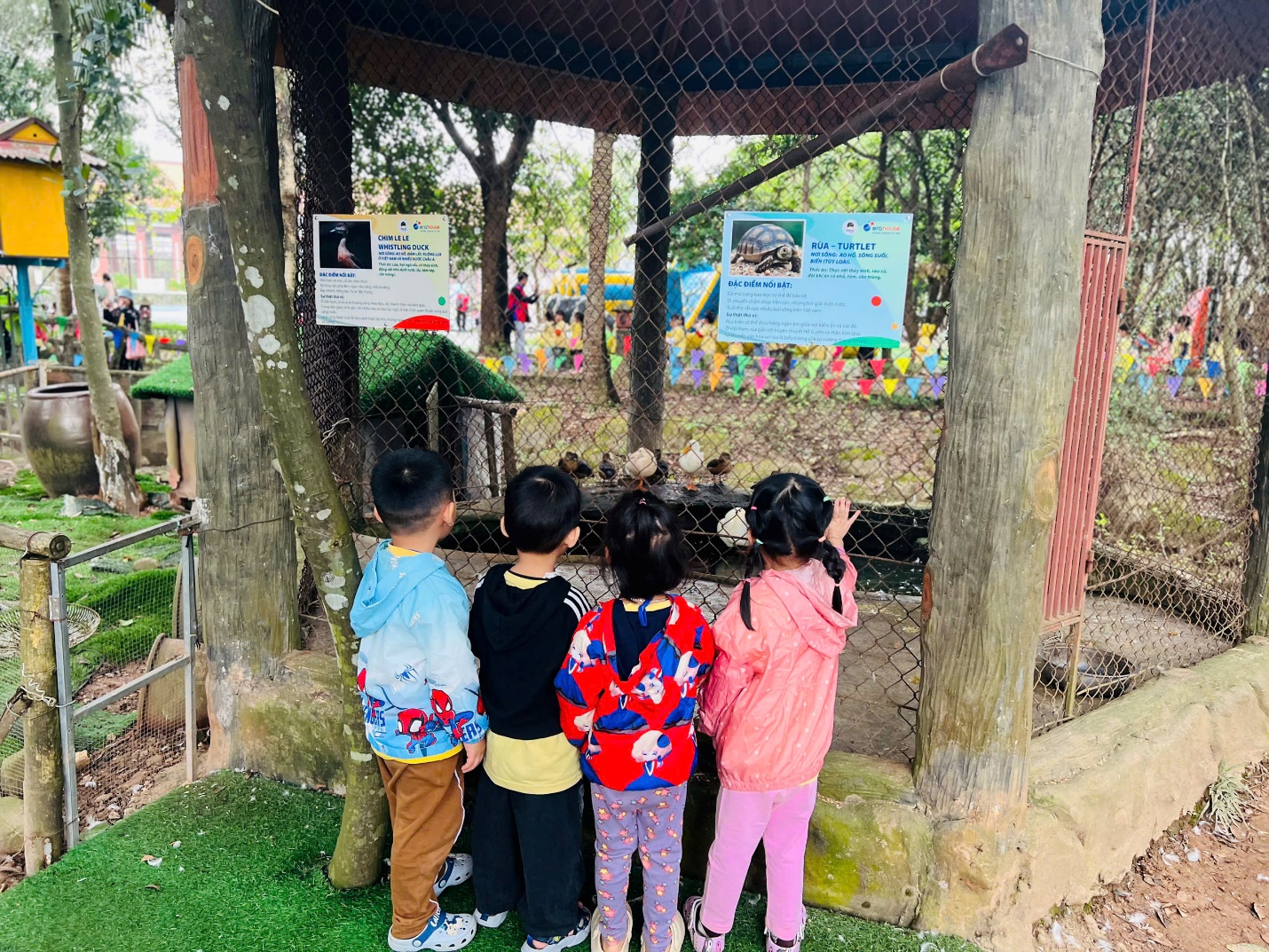Đặt chân tới khu Erahouse, các bé như được bước vào một thế giới thiên nhiên thu nhỏ – trong lành, xanh mát và đầy điều thú vị. Dưới sự hướng dẫn của các cô hướng dẫn viên, các bạn được tham gia vô số hoạt động trải nghiệm bổ ích và vui nhộn: