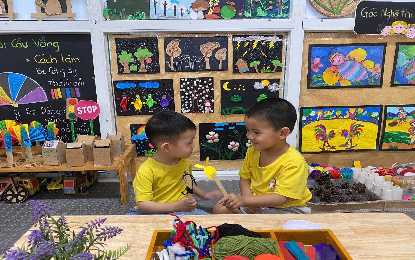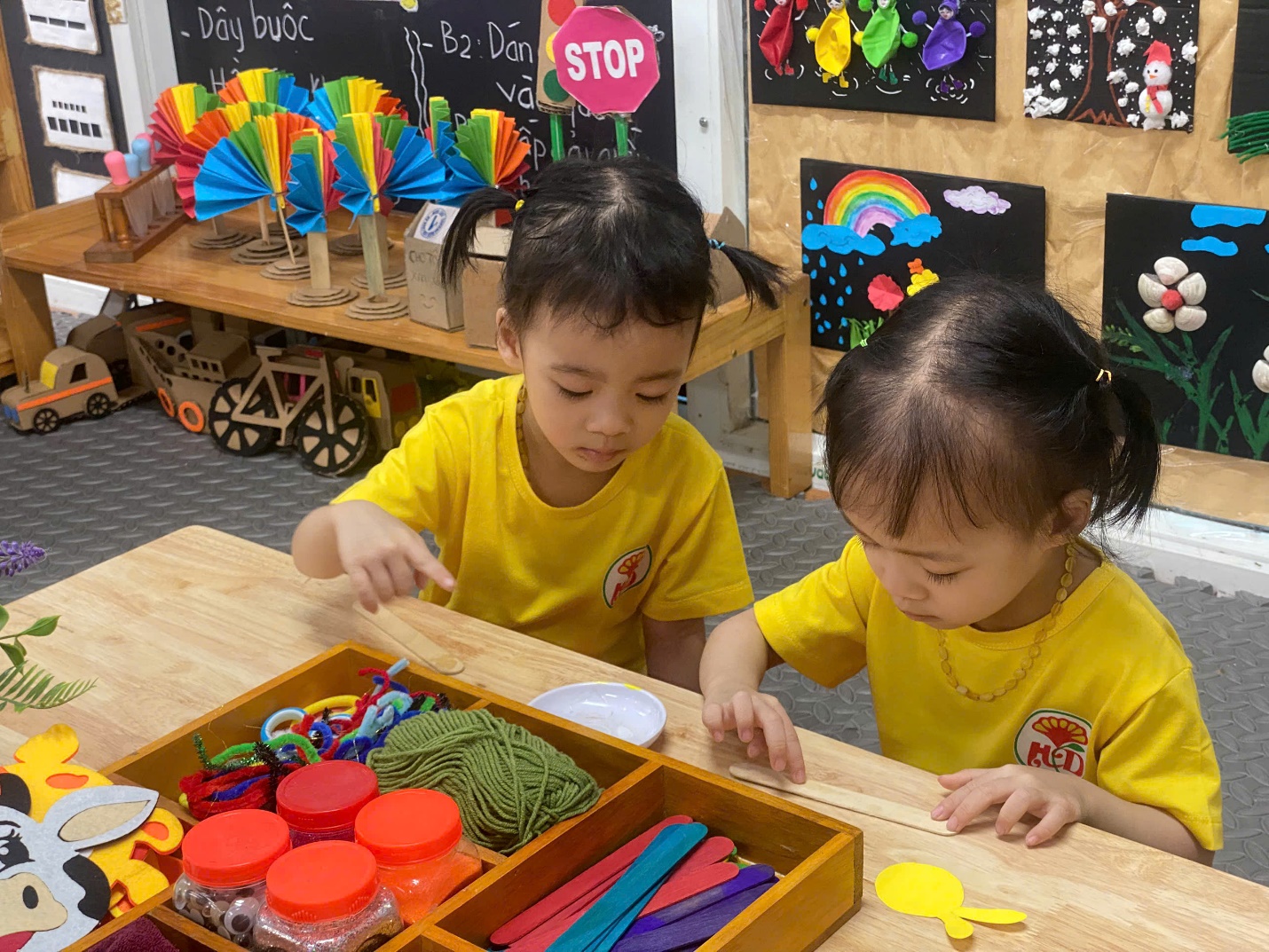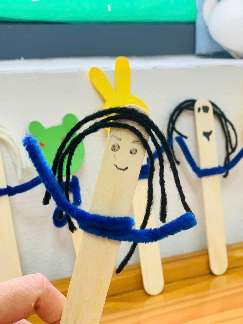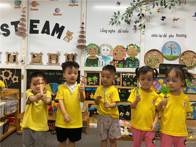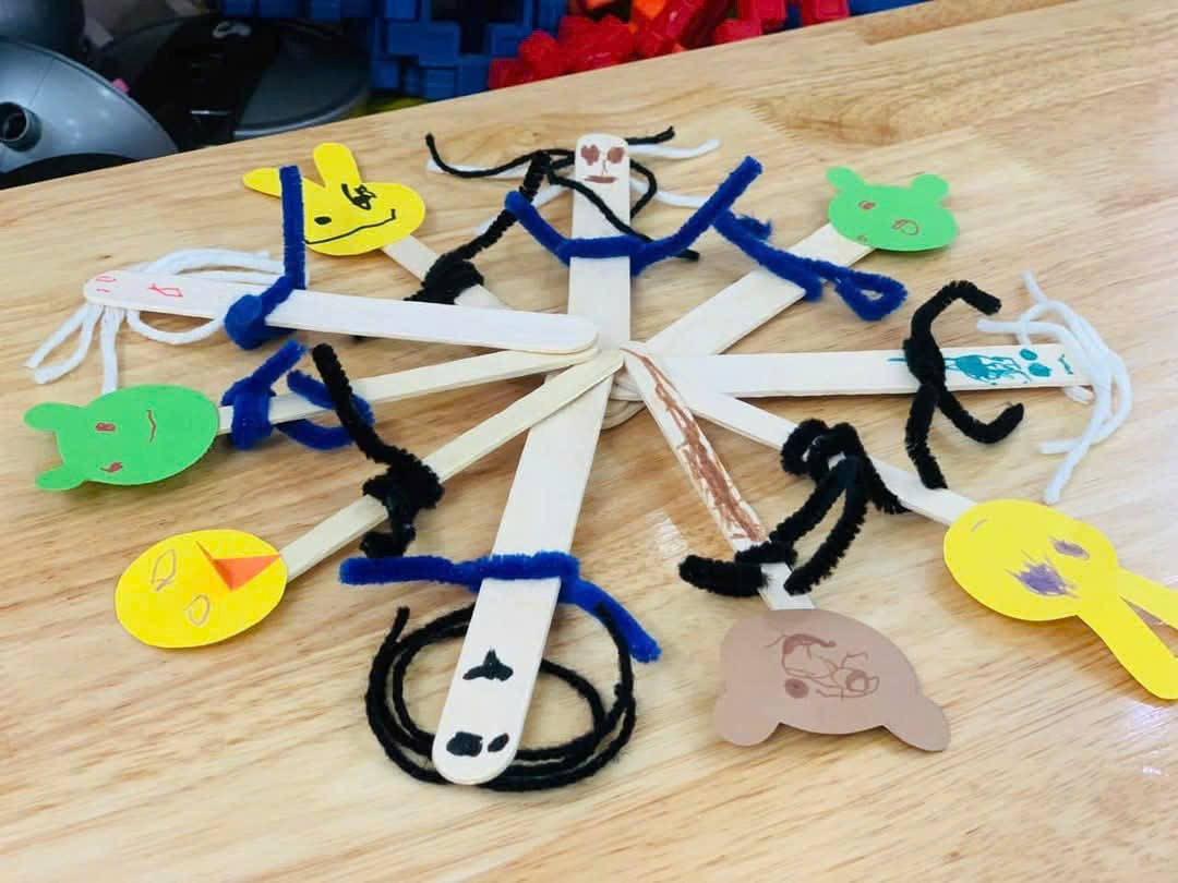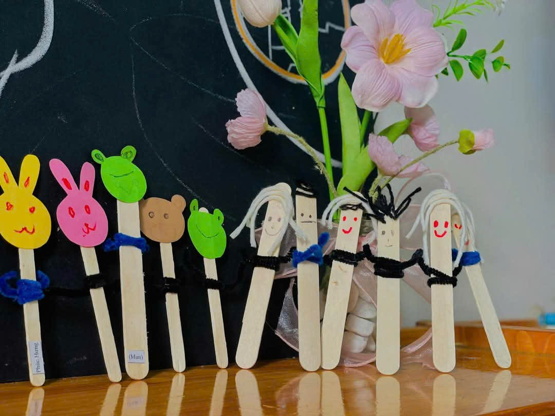 Với những chiếc rối que nhỏ xinh do chính tay mình tạo ra, các con đã trở thành những "nghệ sĩ kể chuyện tí hon". Mỗi nhân vật được thể hiện qua nét vẽ ngộ nghĩnh và lời kể hồn nhiên, giúp trẻ rèn luyện sự tự tin và phát triển ngôn ngữ một cách tự nhiên.