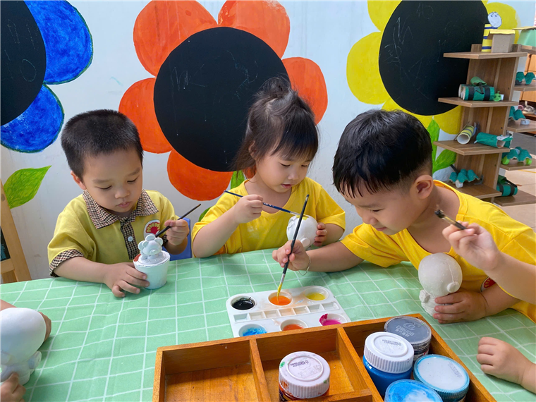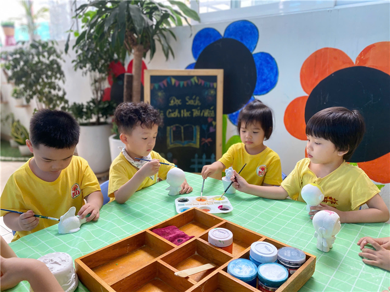 Lấy cảm hứng từ các nhân vật trong truyện, các bé được tự tay tô màu cho những bức tượng nhỏ xinh. Đây là hoạt động giúp trẻ phát triển vận động tinh, khả năng phối hợp tay – mắt và nuôi dưỡng tâm hồn yêu cái đẹp