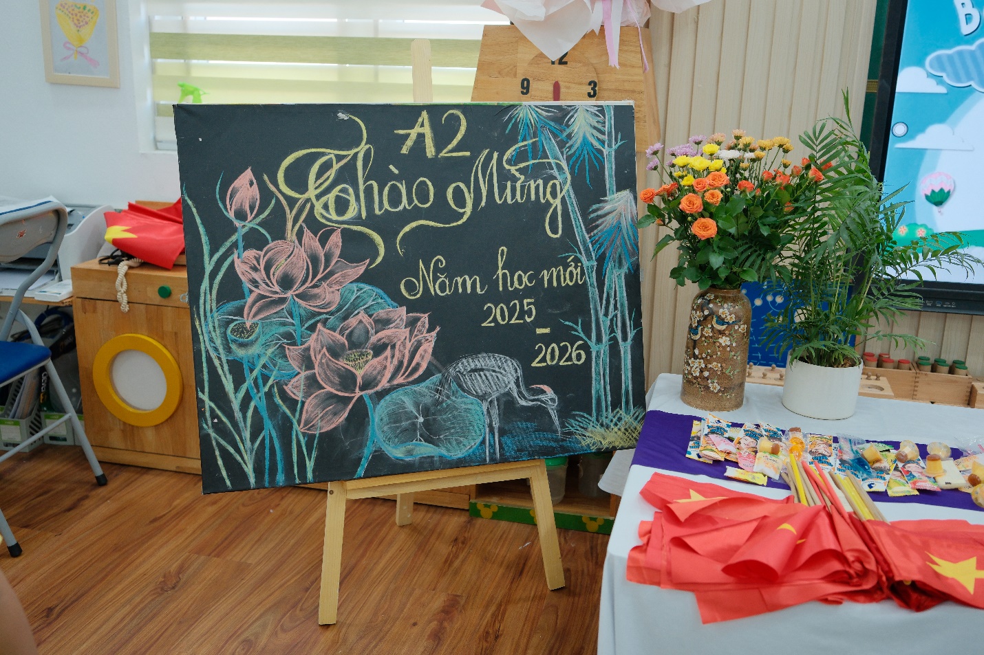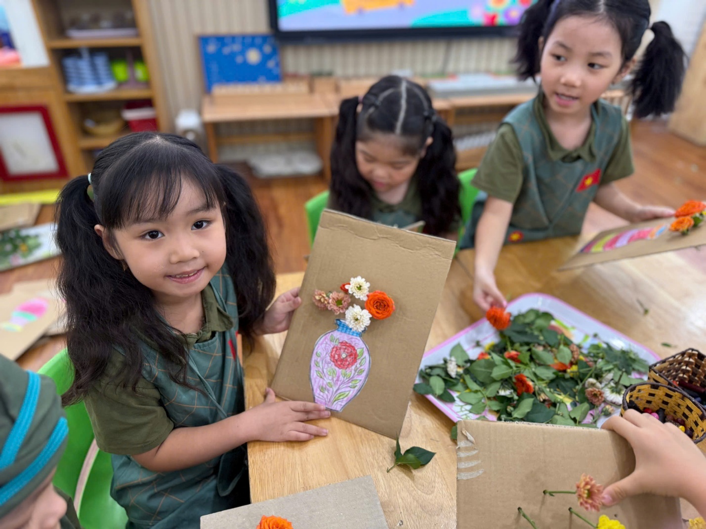Cuối buổi, mỗi bạn nhỏ đều tự hào mang về một lọ hoa tự làm, trên đó gắn một tấm thiệp nhỏ ghi lời chúc mừng. Đây chắc chắn sẽ là một kỷ niệm đáng nhớ, giúp các bé hiểu rằng, việc học không chỉ có kiến thức, mà còn có cả những bài học về lòng biết ơn và sự sẻ chia. Chúc các bé lớp Mẫu giáo lớn A2 đón chào một năm học mới thật nhiều niềm vui tại ngôi trường Mầm non Hoa Hướng Dương.