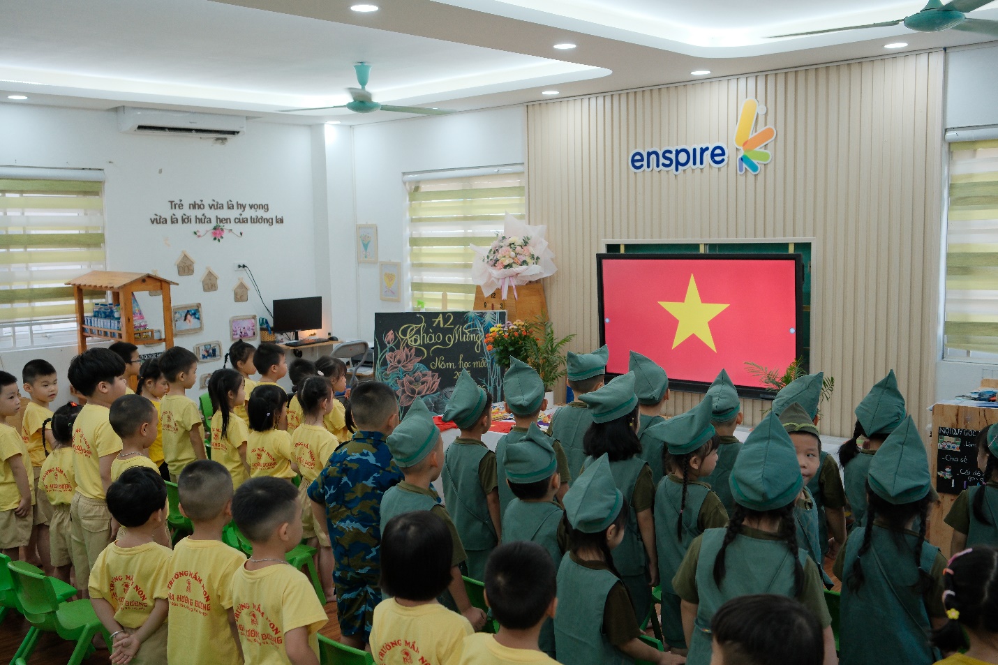 Sáng ngày 5/9, ánh nắng vàng ươm đã len lỏi qua từng kẽ lá, báo hiệu một ngày đặc biệt đã đến – ngày khai giảng năm học mới. Không khí ở sân trường Mầm non Hoa Hướng Dương trở nên náo nhiệt hơn bao giờ hết, với những tiếng cười nói rộn ràng và bước chân tíu tít của các bé. Năm nay, ngày khai giảng của lớp Mẫu giáo lớn A2 tham dự hoạt động vô cùng ý nghĩa “Chào mừng 80 năm ngày thành lập ngành Giáo dục và đào tạo”