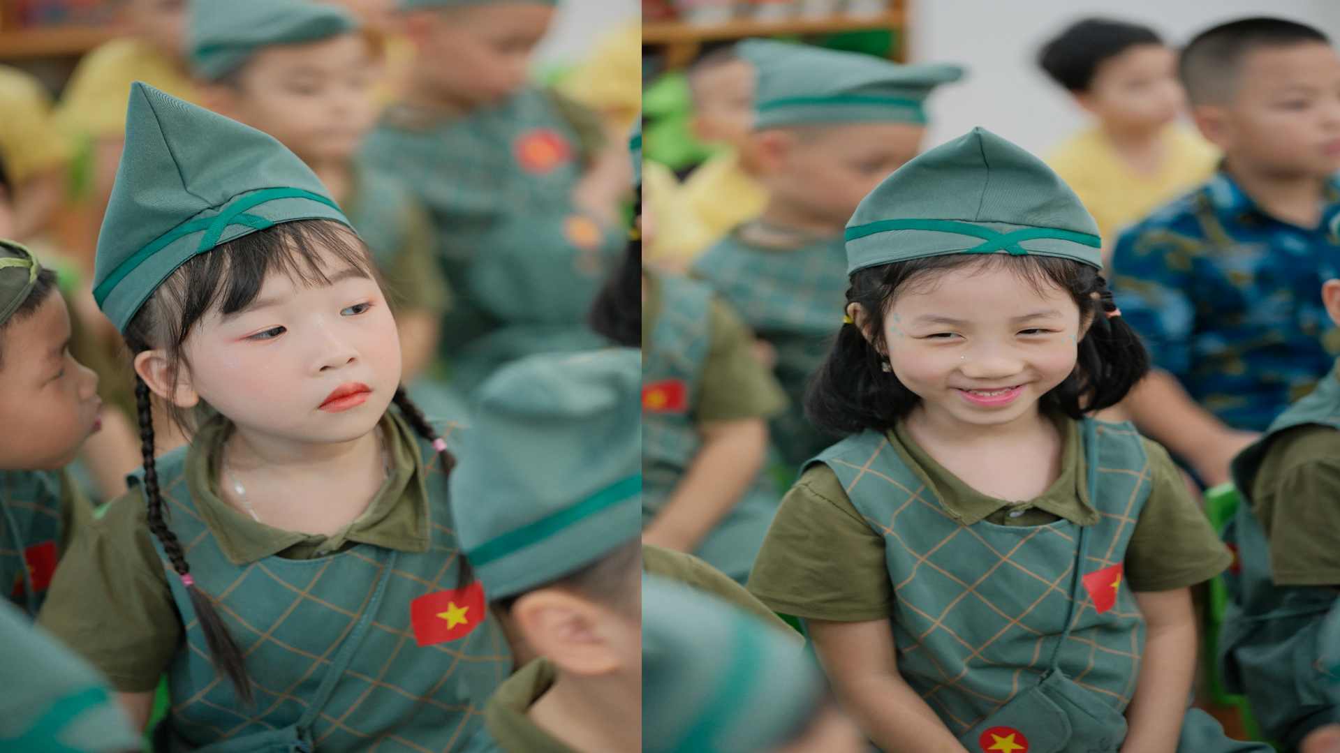Các bạn nhỏ lớp Mẫu giáo lớn A2, những cô bé cậu bé sắp trở thành học sinh lớp một, hôm nay thật bảnh bao và xinh xắn trong bộ đồng phục mới tinh. Trên gương mặt ngây thơ của các con hiện lên cả sự háo hức lẫn chút bỡ ngỡ.