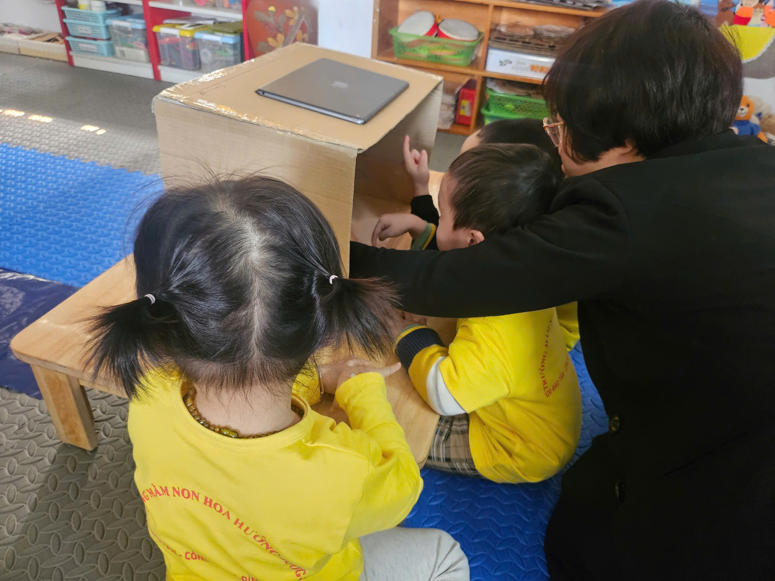 "Sắc màu thông minh” lớp Nhà trẻ D2 ứng dụng trí tuệ nhân tạo (AI) vào hoạt động nhận biết màu sắc của các bé.