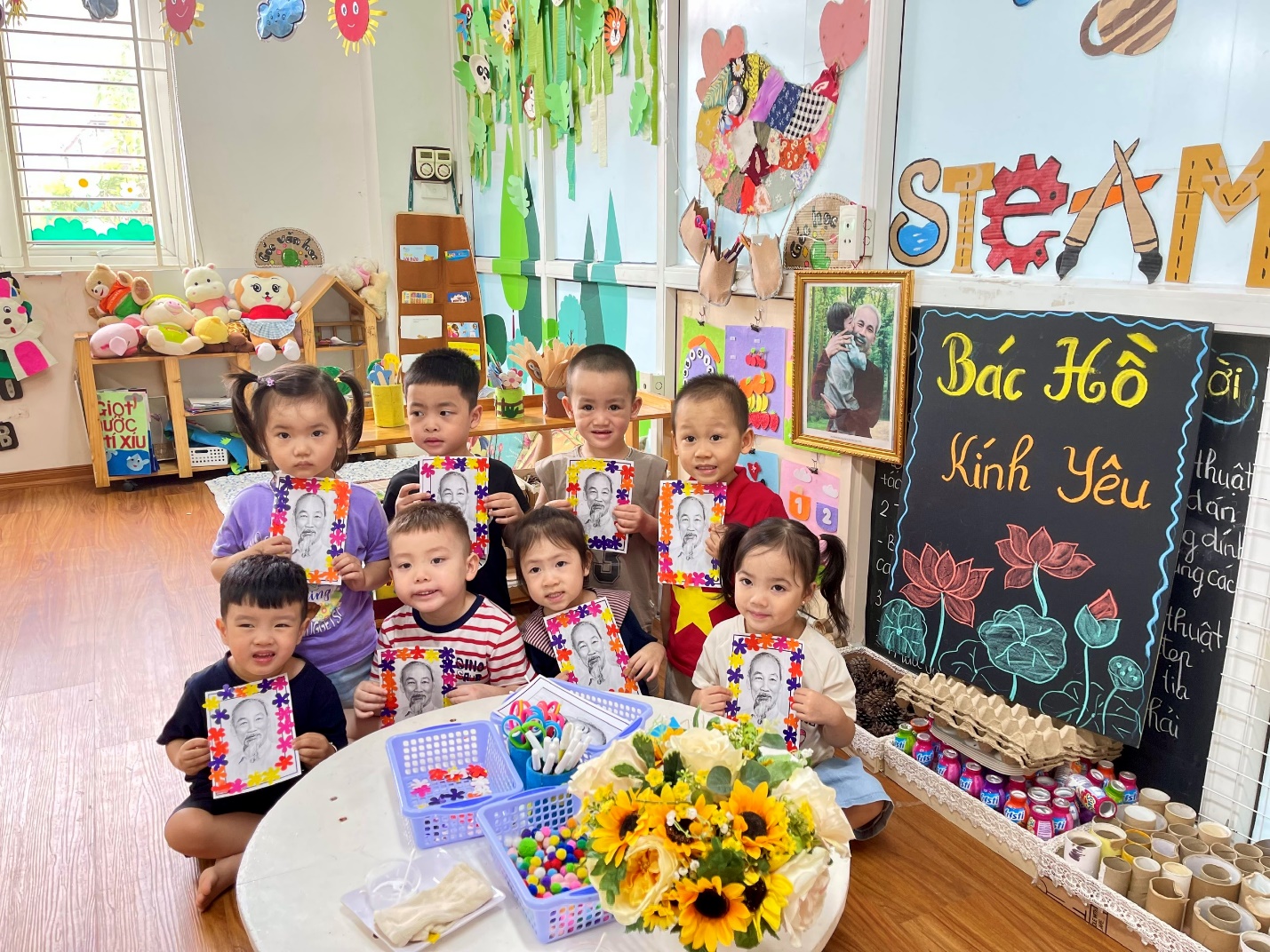 Trong không khí thiêng liêng và đầy cảm xúc hướng về kỷ niệm 135 năm ngày sinh của Bác Hồ kính yêu, các bé lớp C2 đã tham gia một hoạt động vô cùng ý nghĩa: Trang trí khung ảnh Bác Hồ – như một cách thể hiện lòng biết ơn và tình cảm yêu quý của các con đối với vị lãnh tụ vĩ đại của dân tộc.