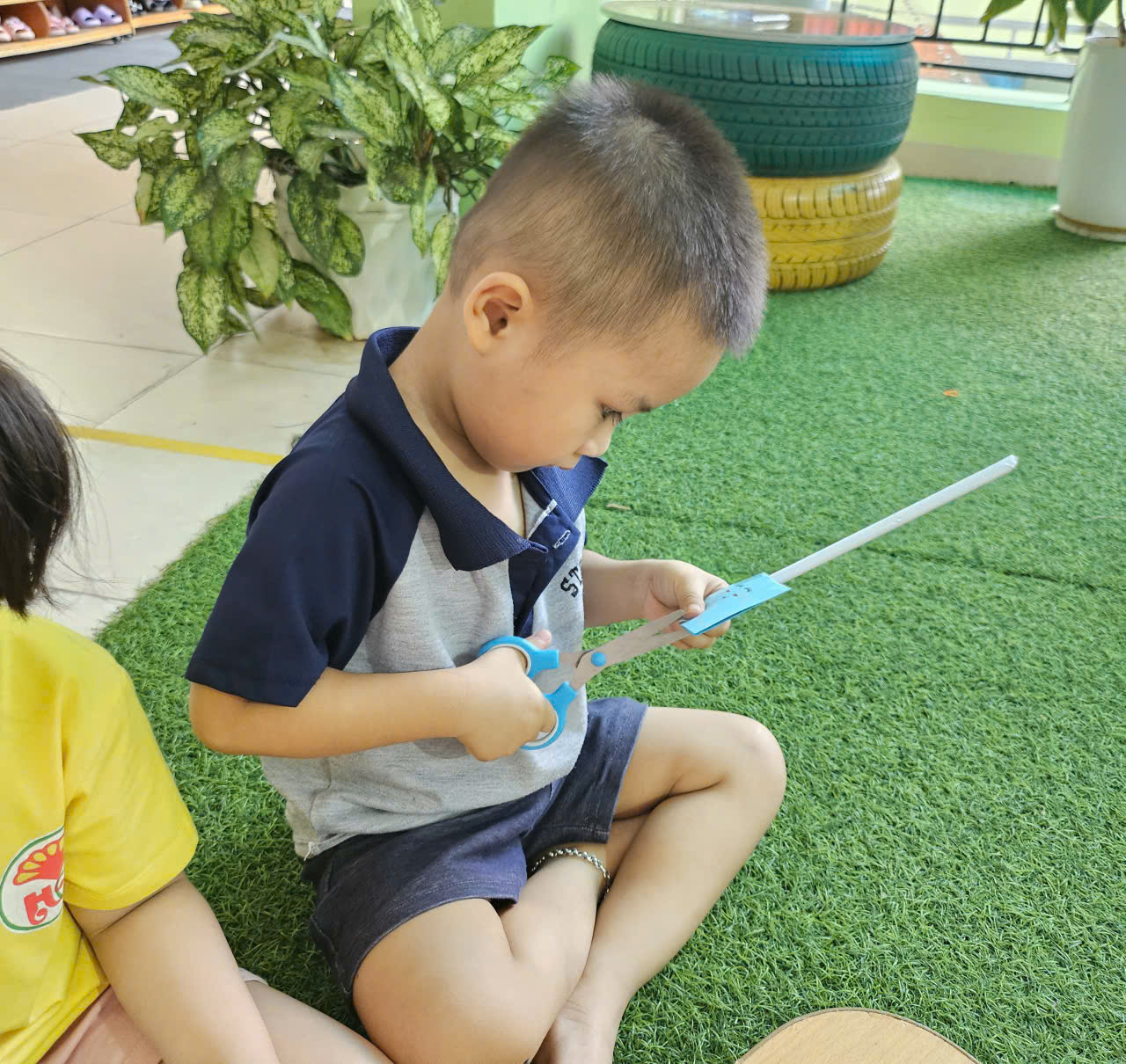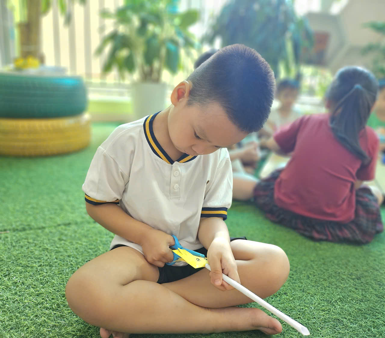 Bằng sự sáng tạo và đôi bàn tay khéo léo, các bé lớp MGN B1 đã cùng nhau tận dụng những nguyên vật liệu quen thuộc, đơn giản để làm nên những chiếc chổi nhỏ xinh. Từng bước cắt, buộc, gắn que… không chỉ rèn cho trẻ kỹ năng phối hợp mà còn nuôi dưỡng tinh thần làm việc nhóm, sự kiên nhẫn và khả năng quan sát.