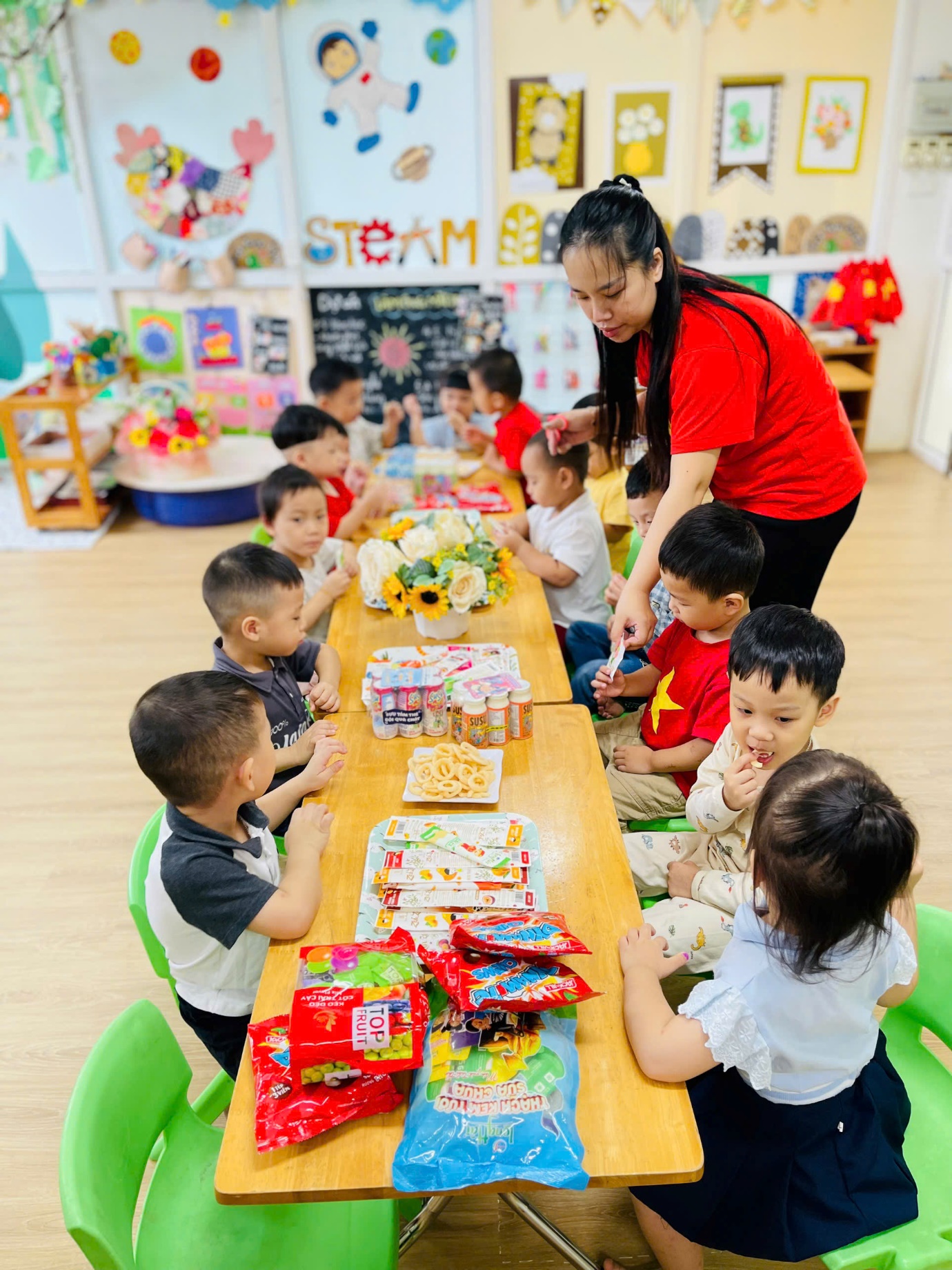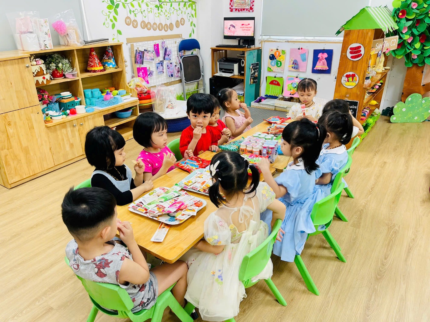 Khép lại ngày đặc biệt là bữa tiệc nhỏ ấm áp với bánh kẹo, hoa quả và những lời chúc ngọt ngào. Tiếng cười vang lên khắp lớp, ánh mắt các con rạng rỡ niềm vui khi được tự tay làm nên điều ý nghĩa dành tặng người mình yêu thương..