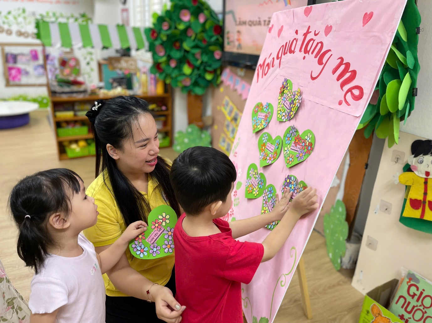 Chuỗi hoạt động “Tháng Mười yêu thương – Bé C2 gửi quà tặng mẹ và cô” không chỉ giúp các con rèn luyện kỹ năng, phát huy sự sáng tạo mà còn nuôi dưỡng lòng biết ơn và tình yêu thương trong tâm hồn trẻ thơ.