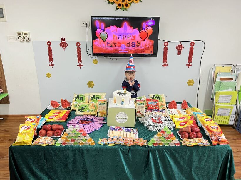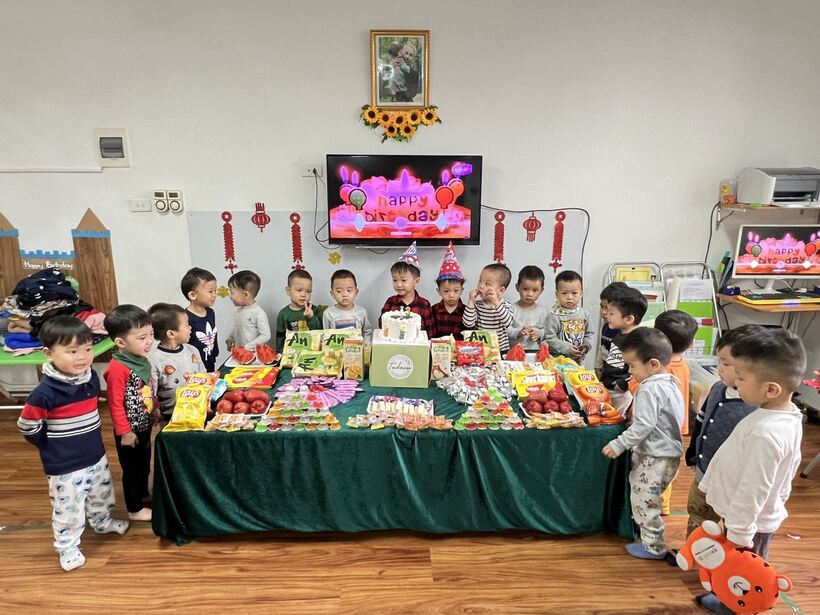 Lớp Nhà trẻ D đã tổ chức buổi tiệc nho nhỏ với tình yêu thương lớn trong niềm vui, sự ấm áp của các cô và bạn bè với những lời chúc tốt đẹp tới các bé trong mỗi dịp sinh nhật.