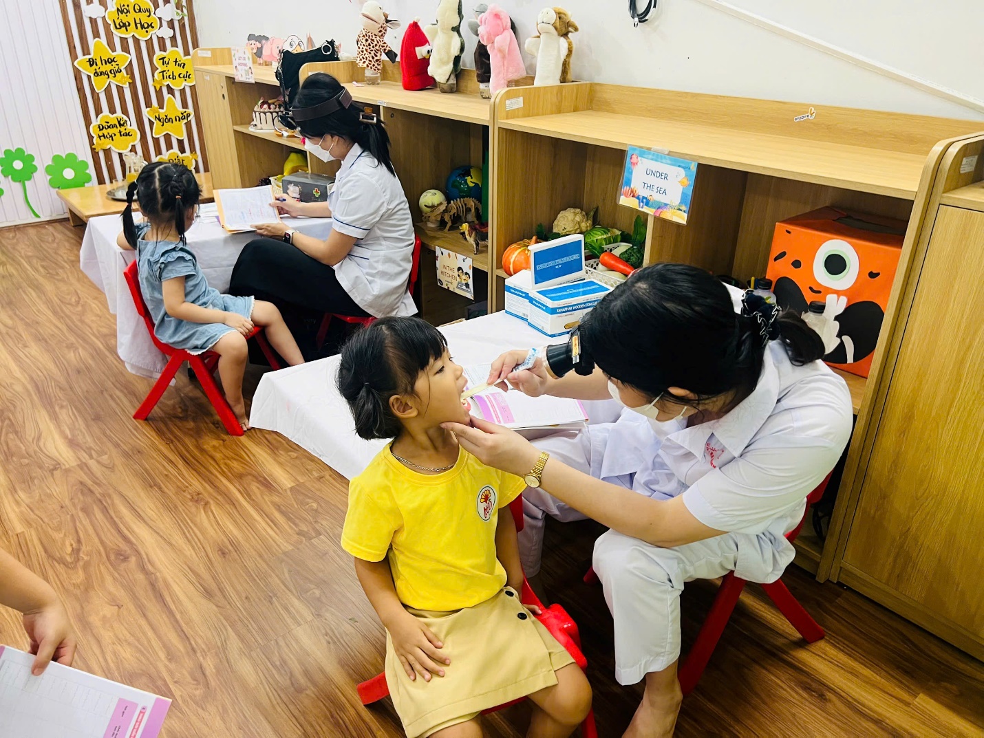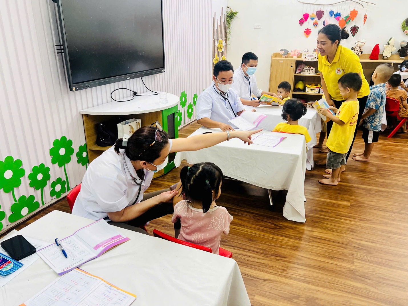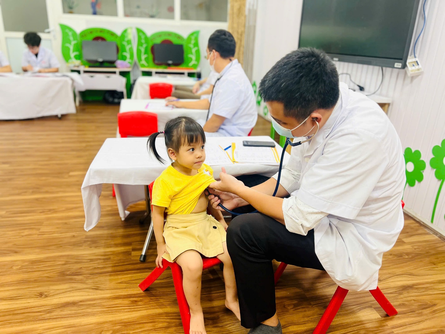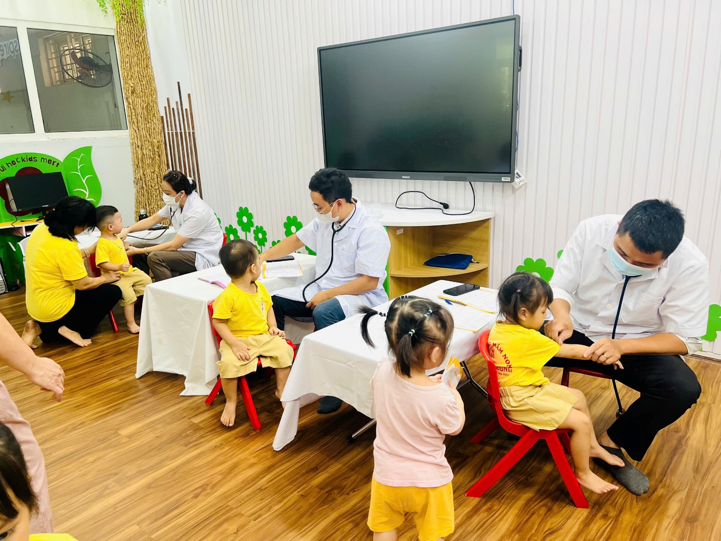 Buổi khám sức khỏe đã diễn ra trong không khí thân thiện, vui vẻ. Đây không chỉ là dịp để kiểm tra tình trạng sức khỏe của trẻ mà còn giúp các con rèn luyện sự tự tin, mạnh dạn hơn khi tiếp xúc với bác sĩ.