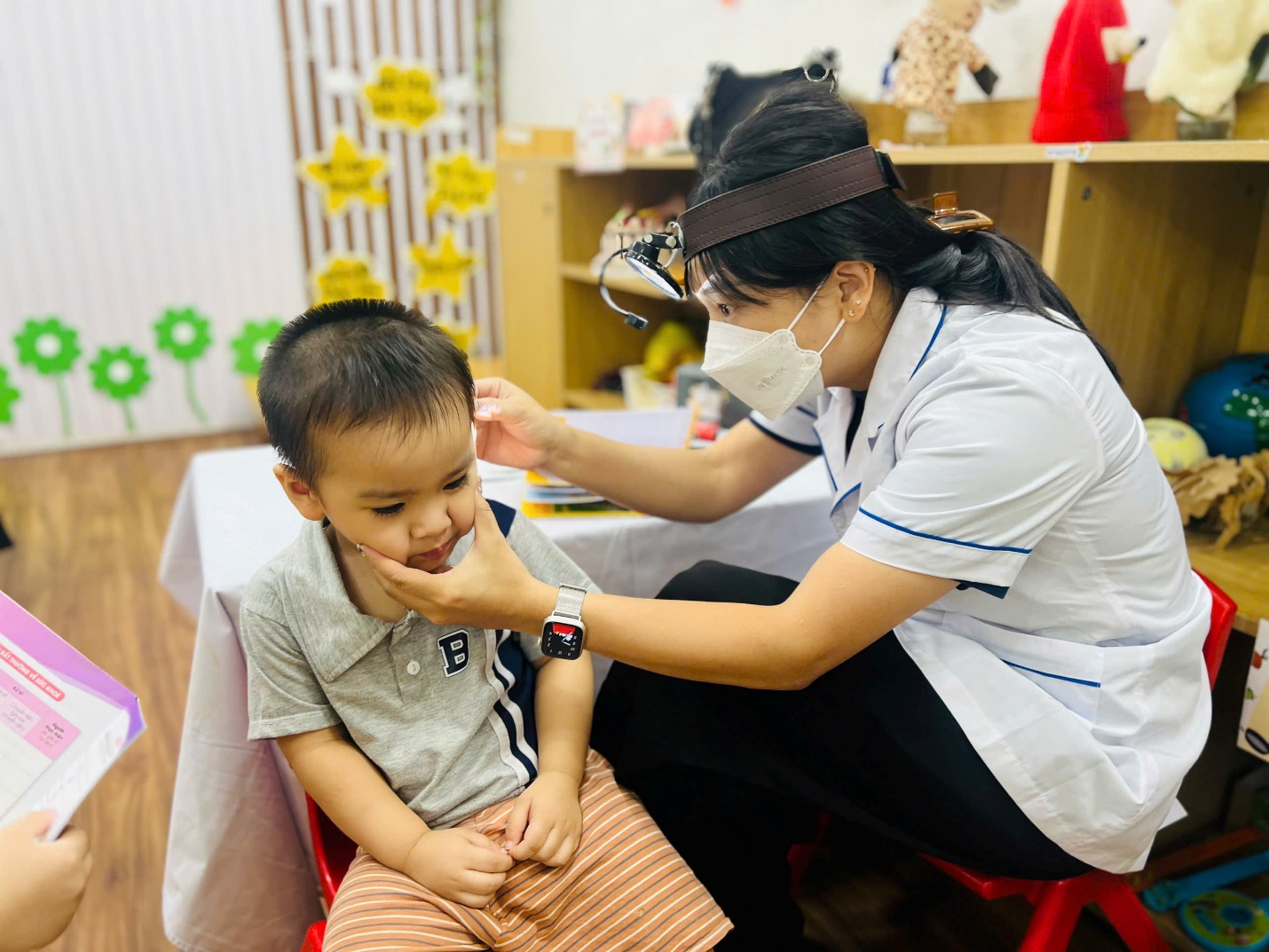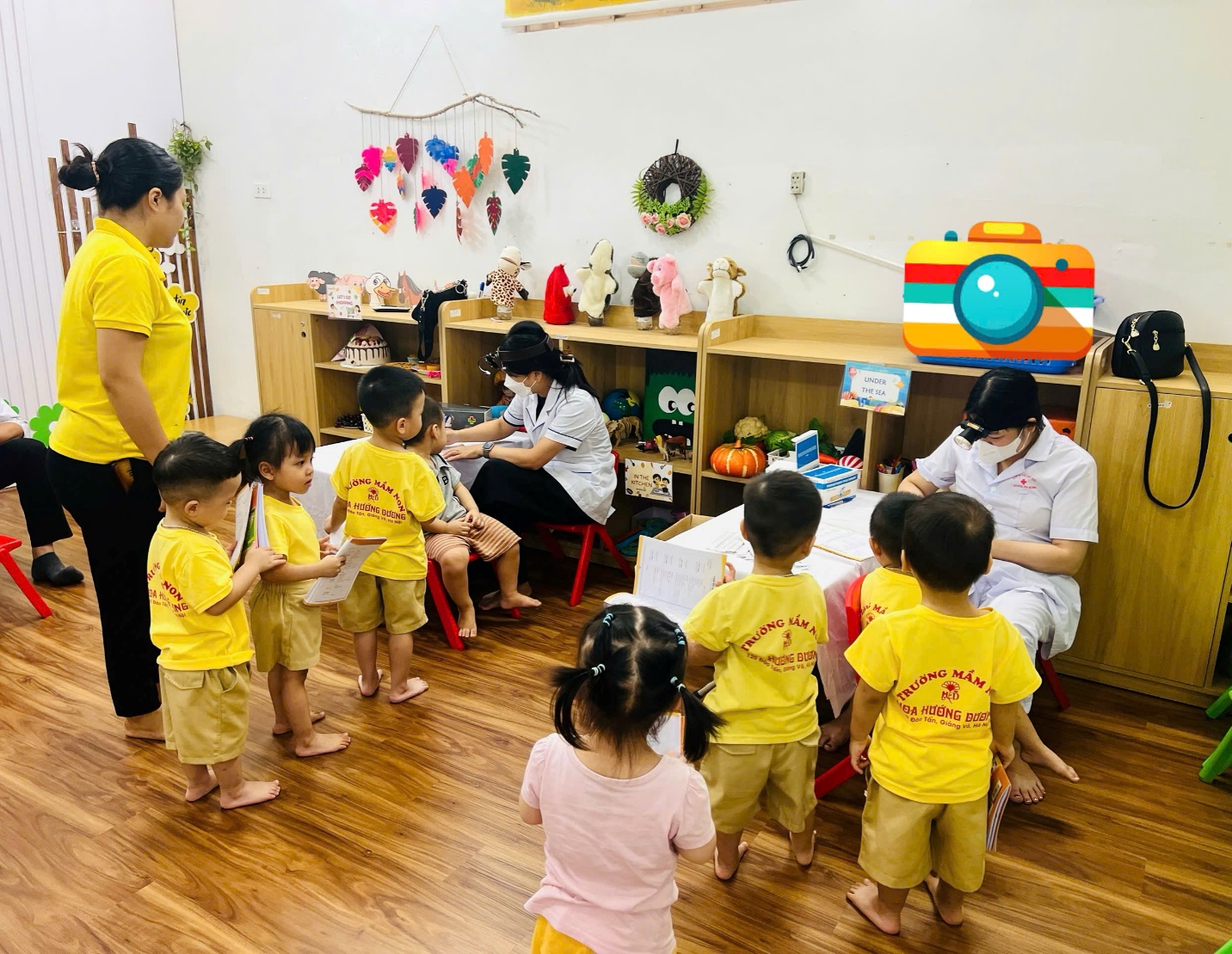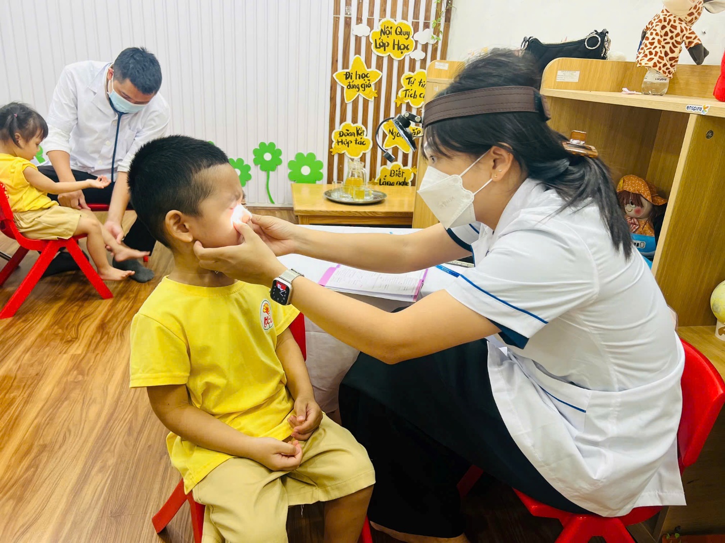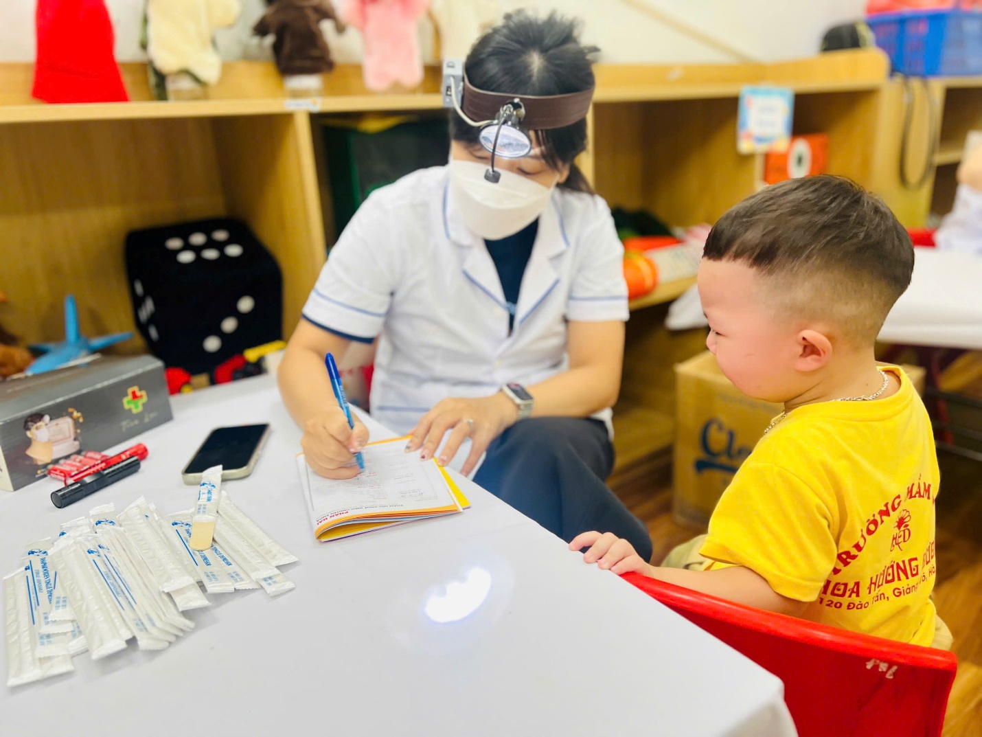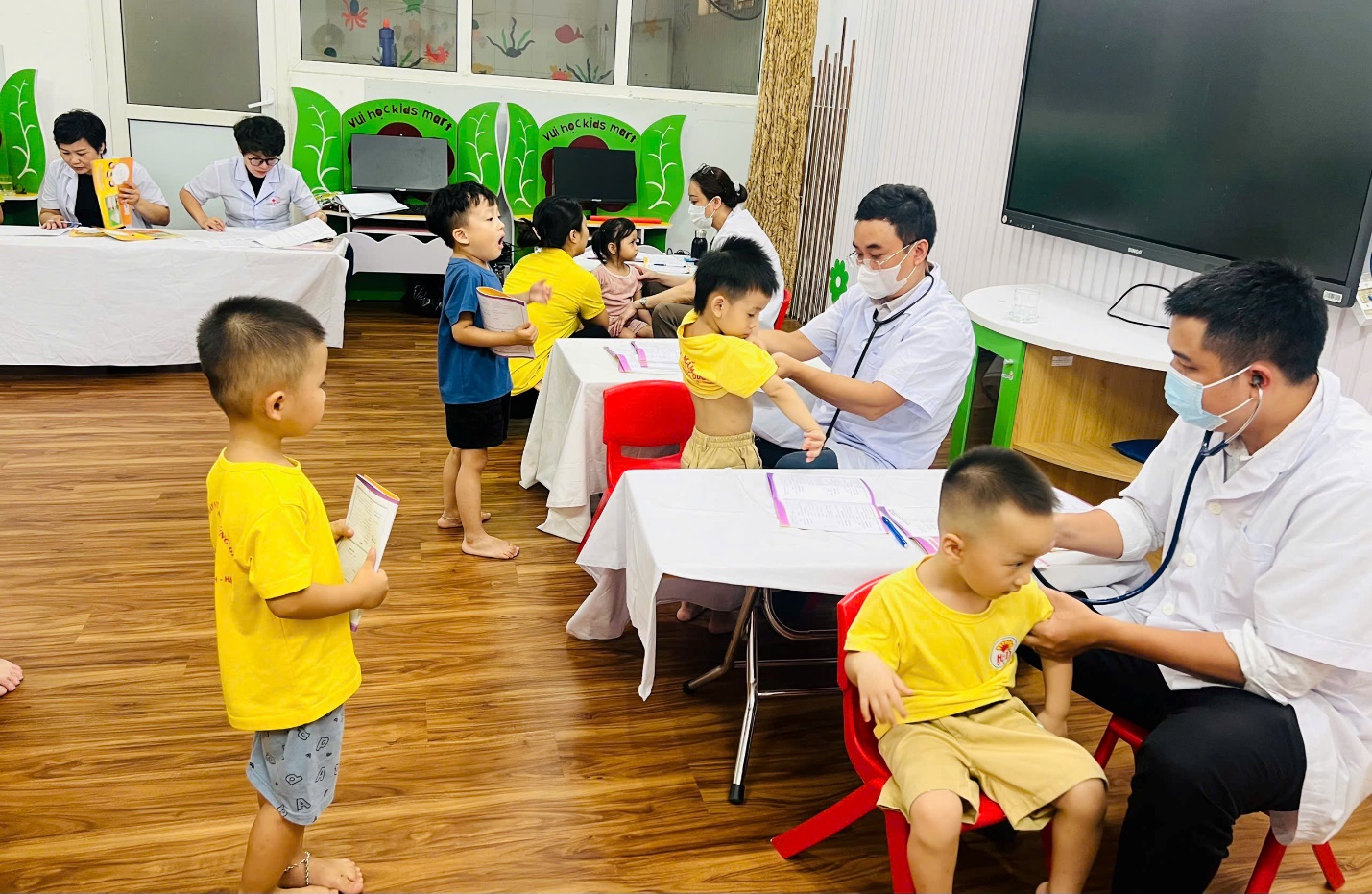 Buổi khám sức khỏe đã diễn ra trong không khí thân thiện, vui vẻ. Đây không chỉ là dịp để kiểm tra tình trạng sức khỏe của trẻ mà còn giúp các con rèn luyện sự tự tin, mạnh dạn hơn khi tiếp xúc với bác sĩ.