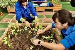Chi đoàn tích cực tham gia hoạt động trồng và chăm sóc cây xanh tại khuôn viên tầng 5