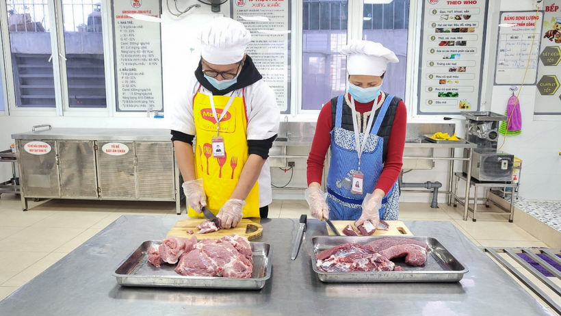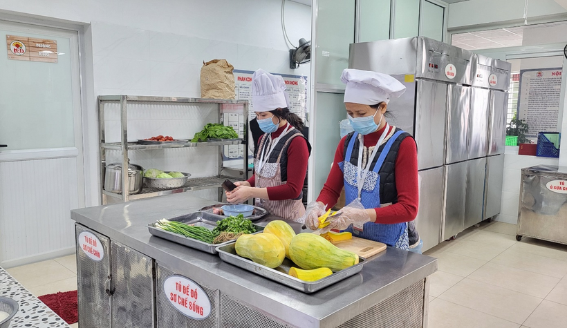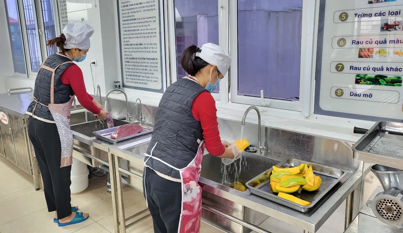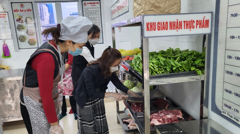 Về kiểm tra nhà trường, có đồng chí Trần Thị Vinh - Phó trưởng phòng GDĐT quận Ba Đình, đồng chí Đào Thu Hương và đồng chí Nguyễn Hải Hà - Chuyên viên phòng GDĐT quận Ba Đình. Ngay từ 7h00 sáng, các đồng chí đã có mặt tại nhà trường để kiểm tra khâu ký và nhận thực phẩm tại bếp (Tầng 5). Sau đó, các đồng chí dự giờ thăm lớp và kiểm tra hồ sơ của nhà trường.