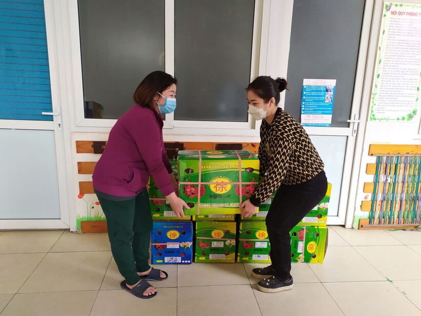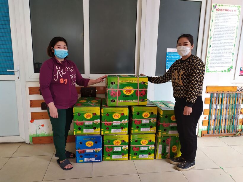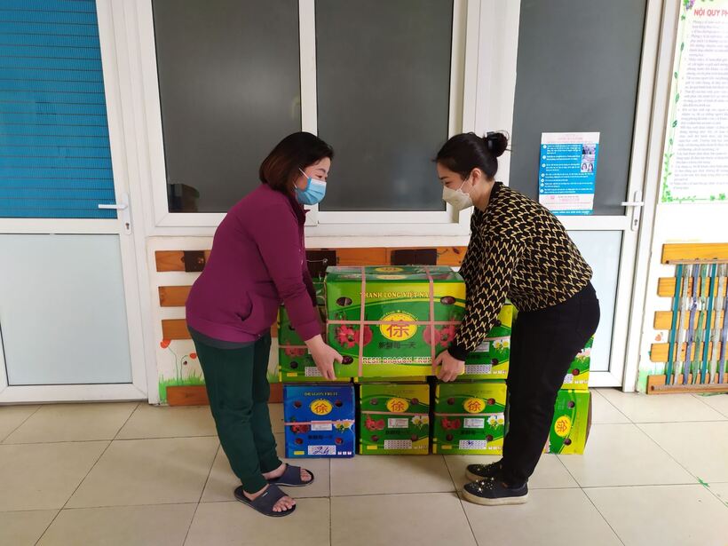 CB-GV-NV trường mầm non Hoa Hướng Dương chung tay giải cứu thanh long giúp đỡ bà con nông dân Bình Thuận vượt qua khó khăn trong mùa dịch.