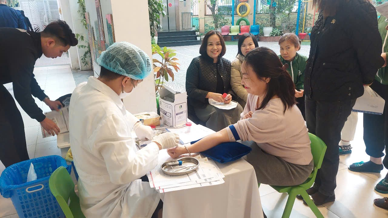 Đây là hoạt động thường niên thể hiện sự quan tâm đặc biệt của Ban giám hiệu nhà trường nhằm đảm bảo cho đội ngũ có sức khỏe tốt nhất sẵn sàng cho nhiệm vụ nuôi dưỡng, chăm sóc, giáo dục trẻ.