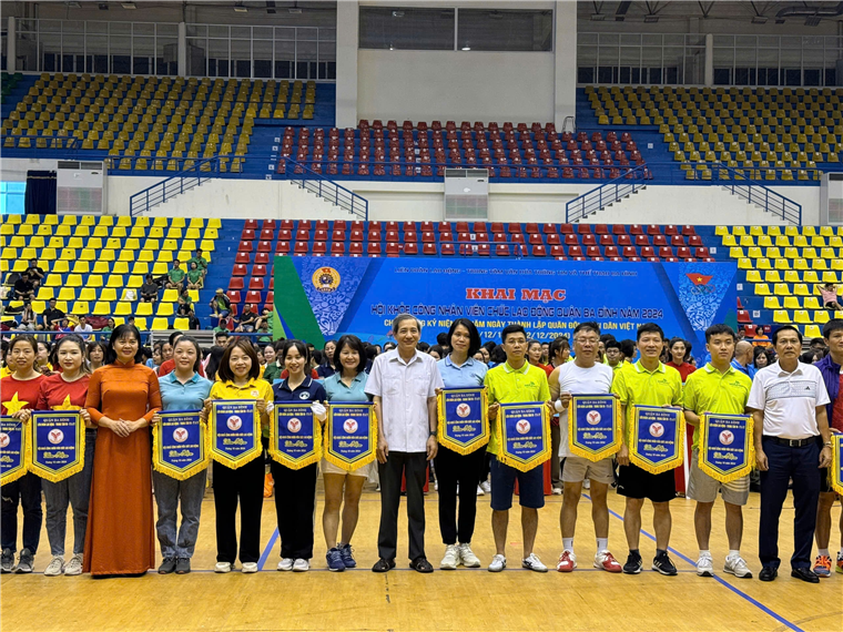 Ban Tổ chức trao Cờ lưu niệm cho các đơn vị tham dự Hội khỏe