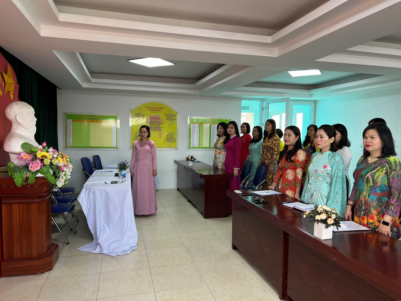 Thay mặt Ban chấp hành Công đoàn, đ/c Nguyễn Thúy Hường thông qua quy chế hoạt động, chi tiêu công đoàn năm học 2022 -2023, nêu cao tinh thần thi đua như một lời hứa của tập thể đội ngũ giáo viên, nhân viên sẽ phấn đấu, vì sự thành công của nhà trường.
