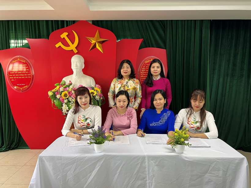 Đại diện các đ/c giáo viên khối MGL lên ký bản cam kết.