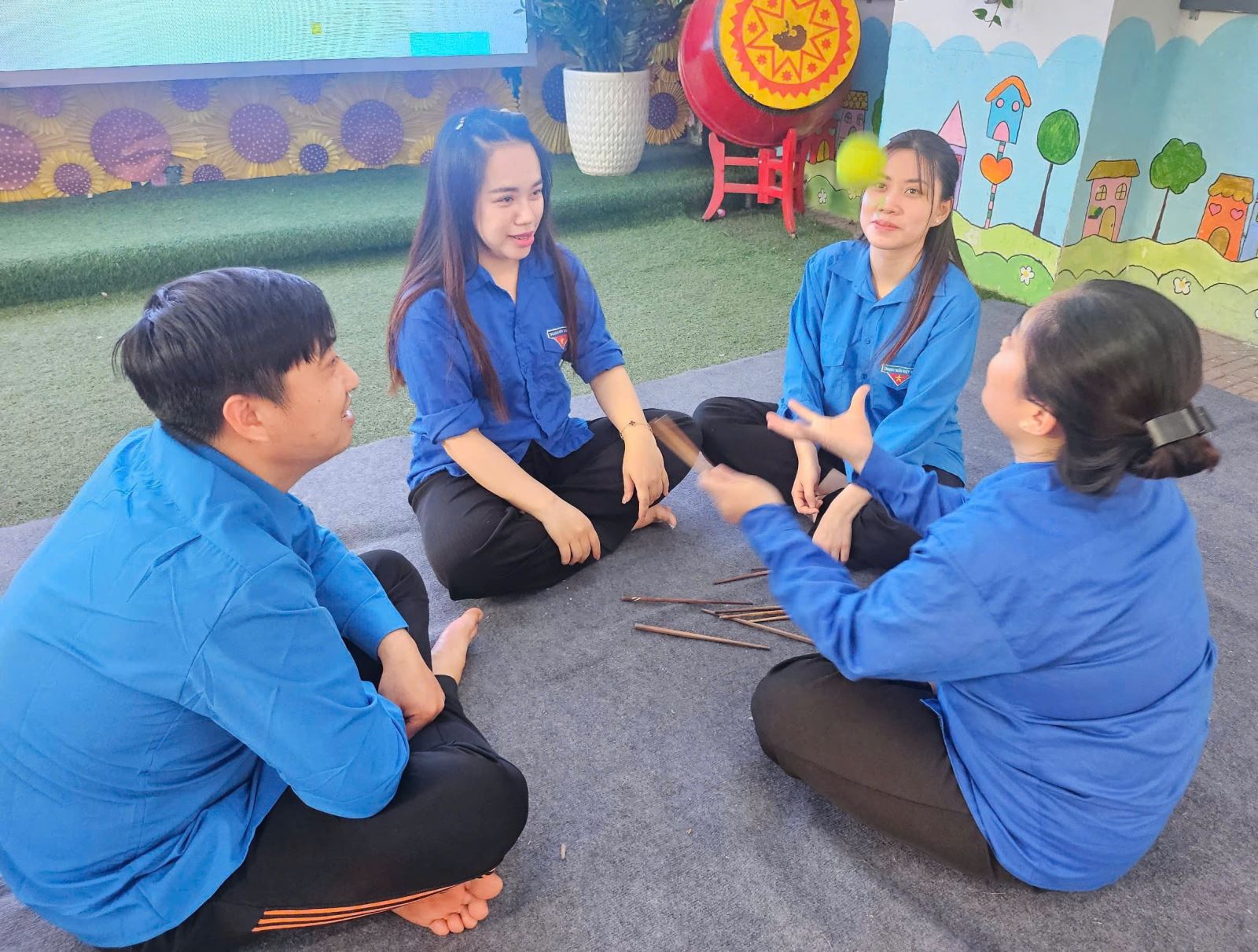 Bên cạnh những hoạt động tìm hiểu về kiến thức văn hóa xã hội, chúng tôi còn được hòa mình vào không gian văn hóa truyền thống qua các trò chơi dân gian như banh đũa, nhảy dây. Những trò chơi này không chỉ mang lại tiếng cười sảng khoái, mà còn giúp mỗi đoàn viên gắn kết nhau hơn.