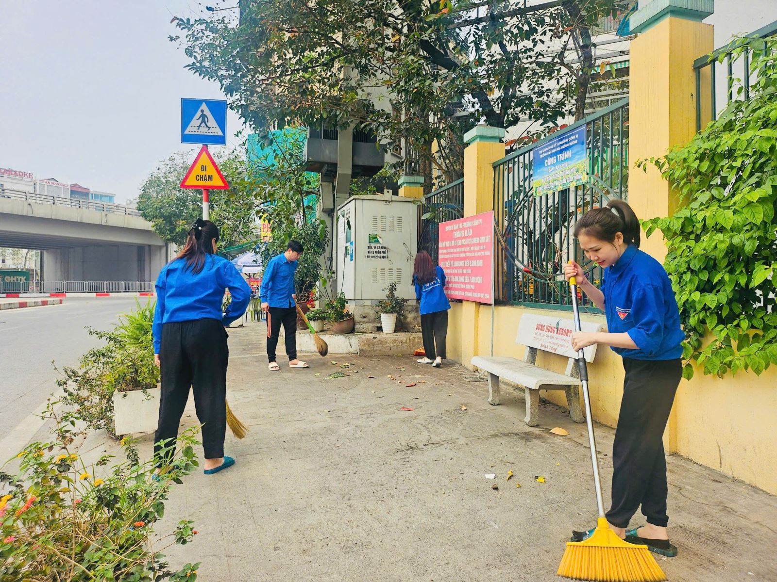 Các bạn đoàn viên trong chi đoàn cùng nhau tham gia hoạt động dọn dẹp vệ sinh môi trường. Đây là một hành động thiết thực, thể hiện trách nhiệm của tuổi trẻ đối với cộng đồng và xã hội.