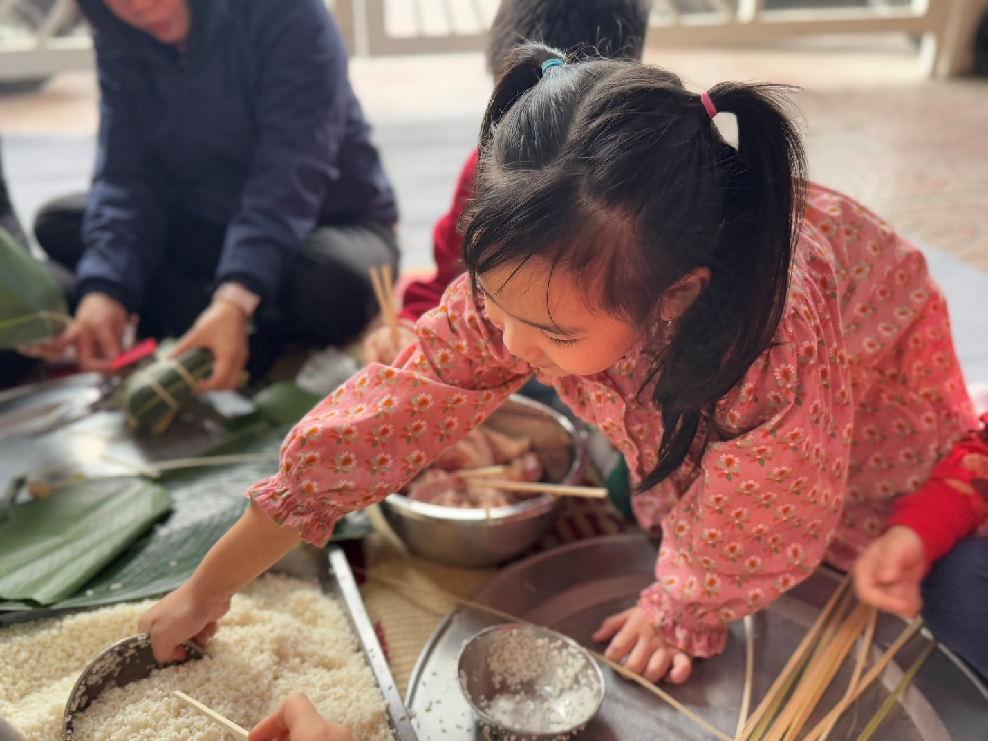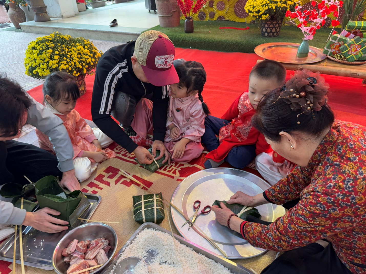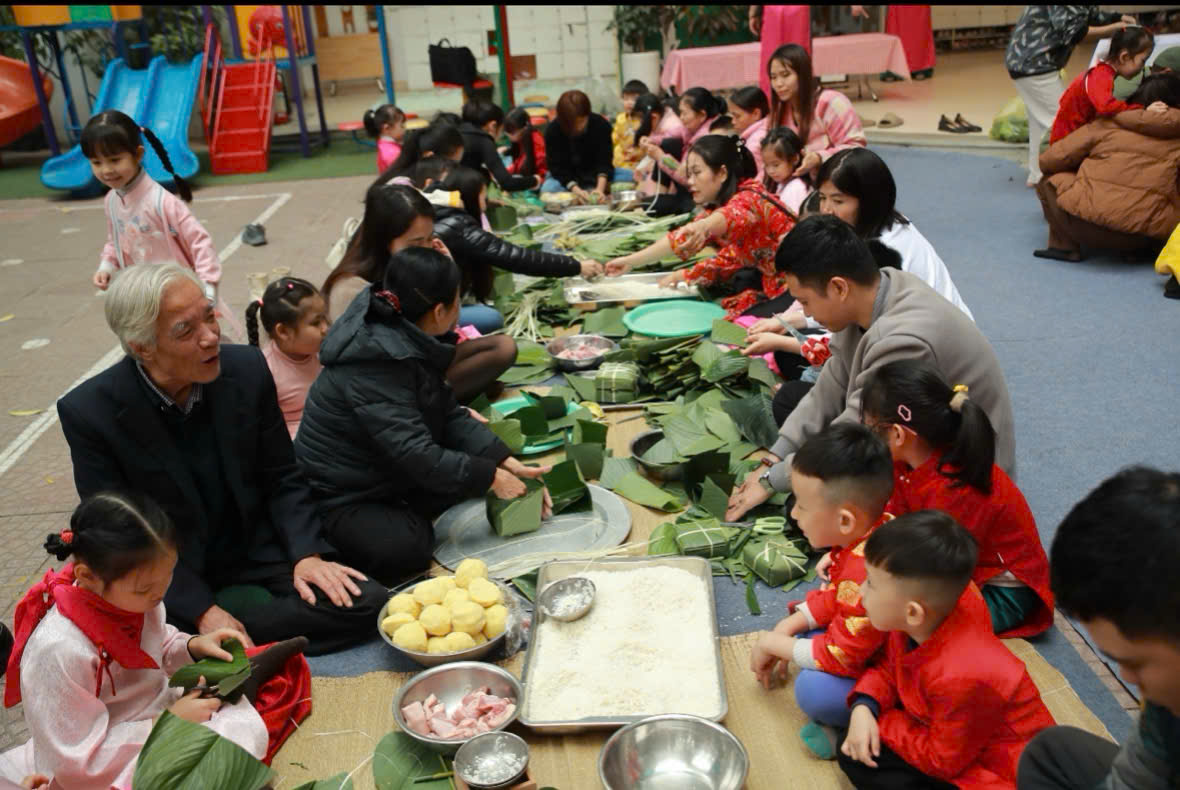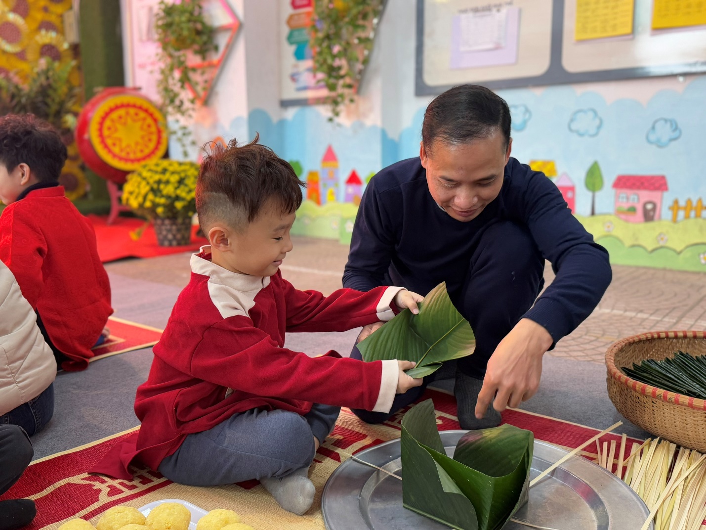 Dưới sự hướng dẫn tận tình của bố mẹ và cô giáo, các bé được tự tay thực hiện các công đoạn gói bánh: từ việc lau lá dong, vo gạo... đến việc xếp nhân thịt và gói bánh. Những đôi bàn tay nhỏ xíu tạo nên những chiếc bánh chưng xinh xắn, vuông vắn. Không khí tại Lễ hội trở nên vô cùng sôi động và ấm áp.