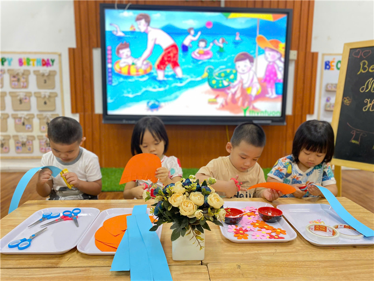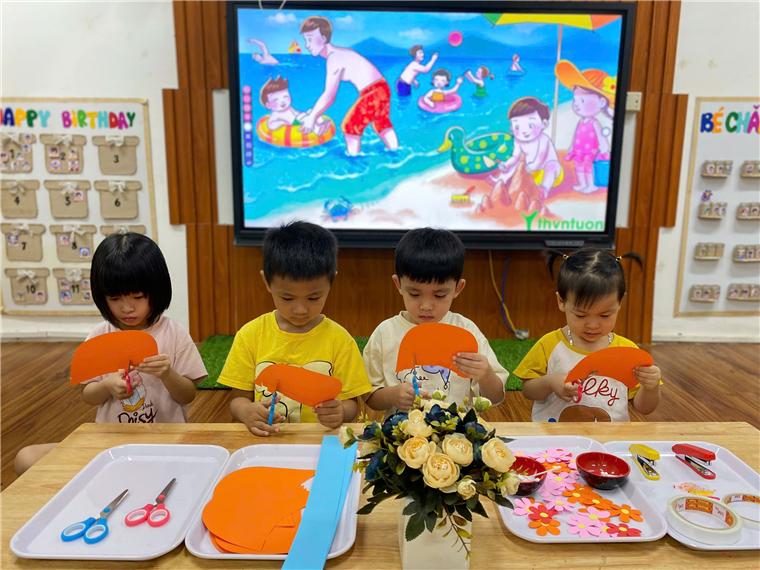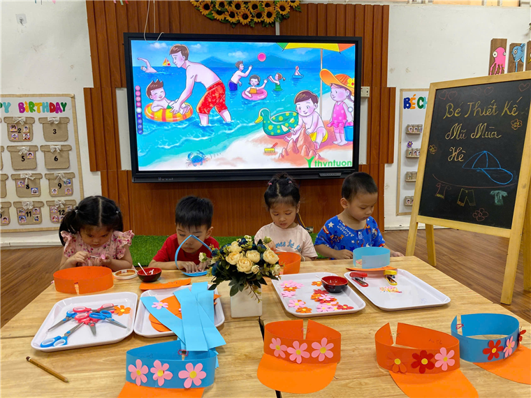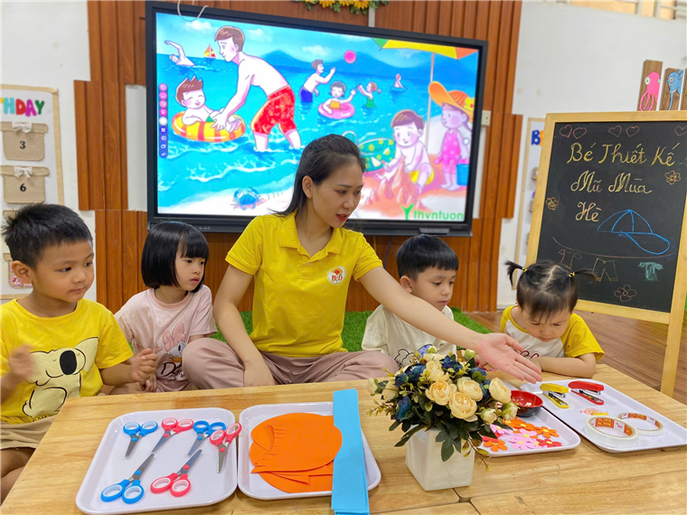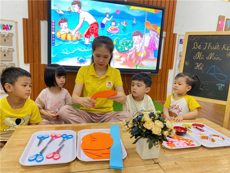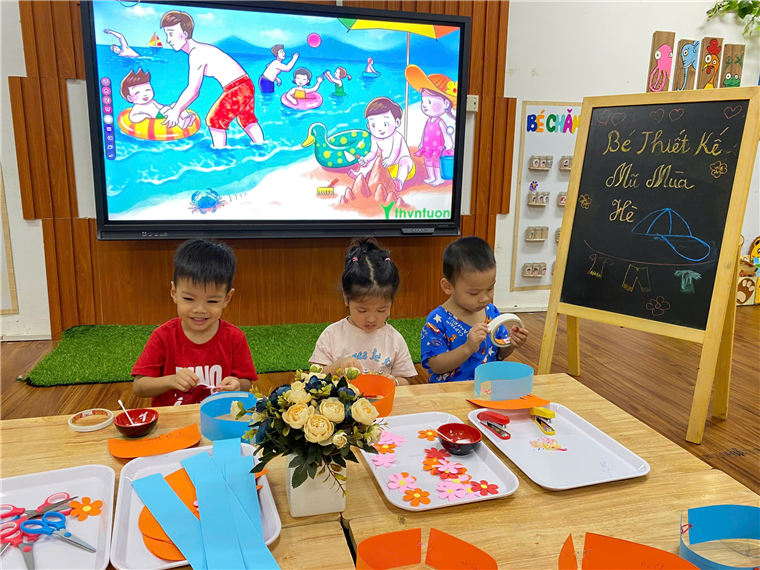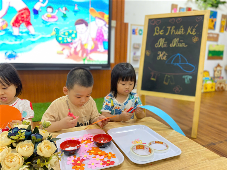 Khi những tia nắng vàng rực rỡ bắt đầu len lỏi qua ô cửa, báo hiệu một mùa hè sôi động đã đến, các cô giáo lớp Mẫu giáo bé C3 đã cùng các con thực hiện hoạt động thiết kế mũ mùa hè độc đáo. Đây là dịp để các bé thỏa sức thể hiện sự khéo léo, trí tưởng tượng phong phú của mình, đồng thời có thêm những chiếc mũ xinh xắn để che nắng trong các hoạt động ngoài trời.