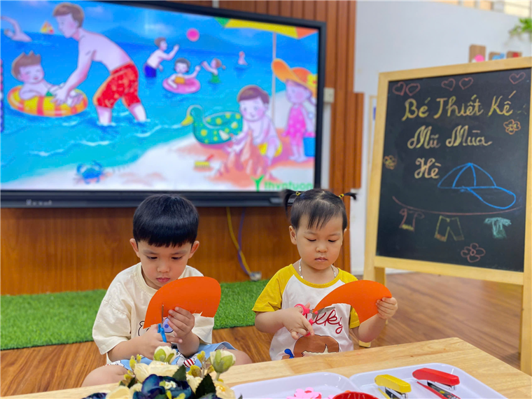 Các bé đã tạo ra những chiếc mũ vừa dễ thương lại vừa sáng tạo, giúp các con chuẩn bị sẵn sàng cho một mùa hè thật vui tươi. Hãy cùng chúc các bé có những ngày hè vui vẻ và tràn đầy những hoạt động thú vị, để mỗi ngày đều là một cơ hội để các con khám phá bản thân và thế giới xung quanh!