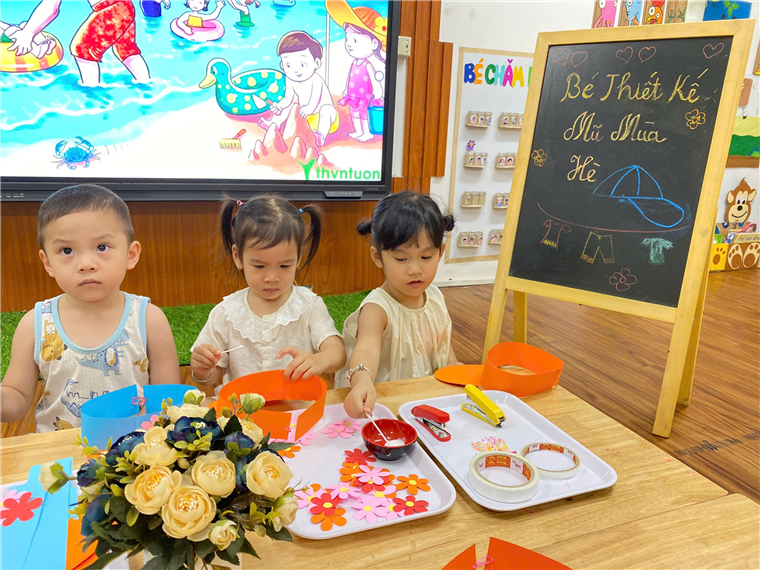 Các bé lớp Mẫu giáo bé C3 "Thiết kế mũ" – Chào hè rực rỡ