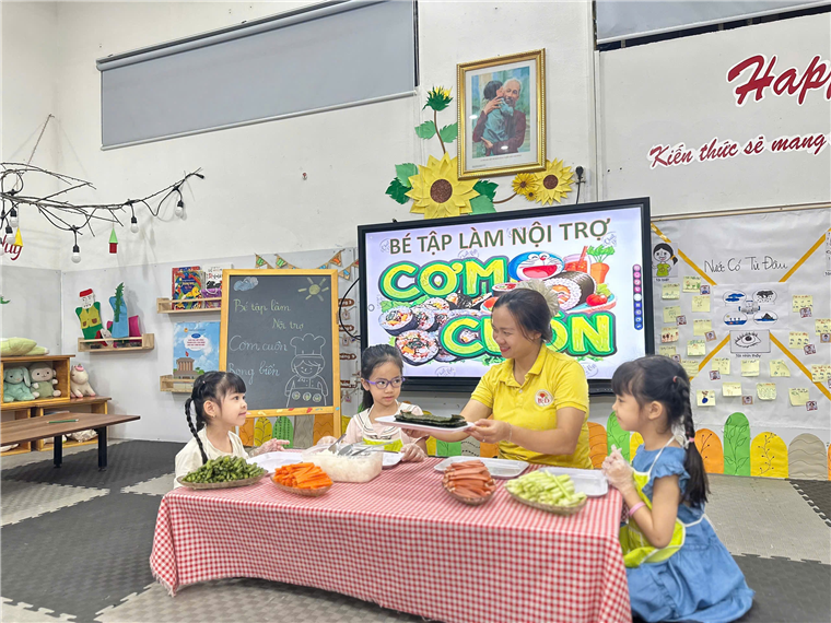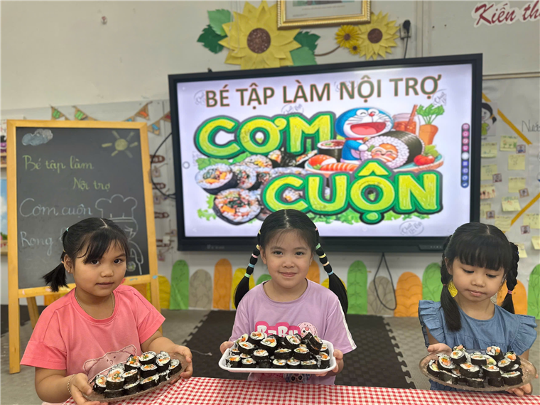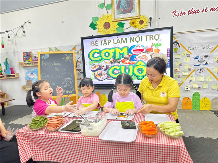 Những giờ học trên lớp không chỉ giúp các bé biết cách phụ giúp bố mẹ khi ở nhà, mà còn khơi dậy sự hào hứng và niềm vui khi tự tay làm ra những món ăn yêu thích.
