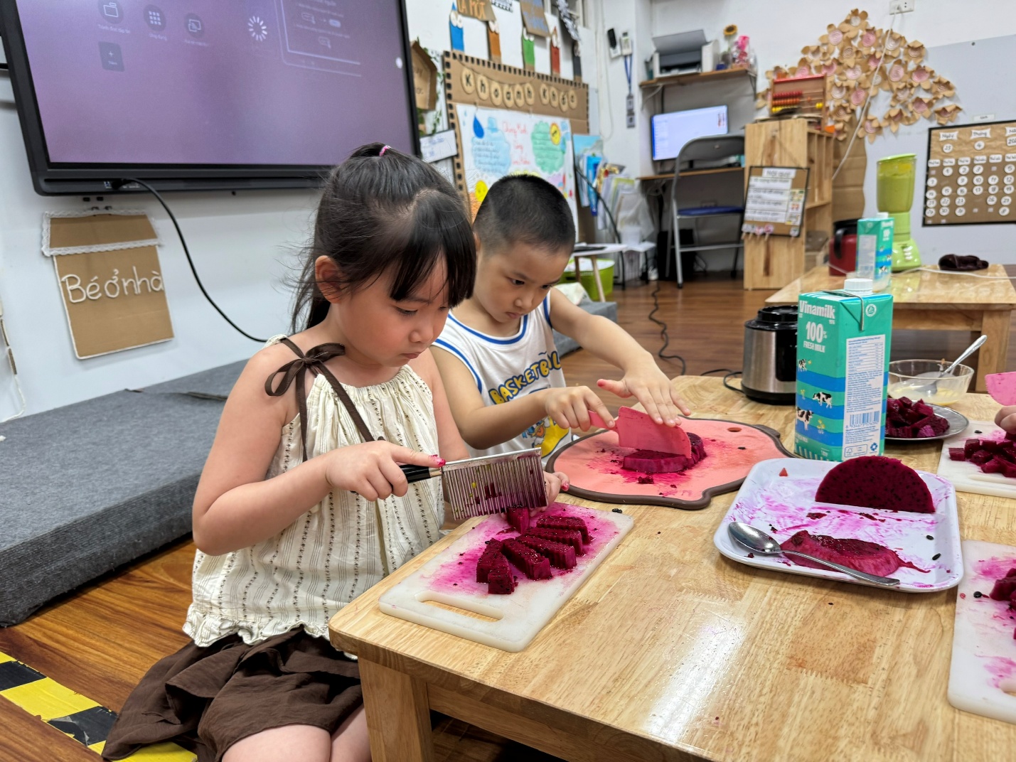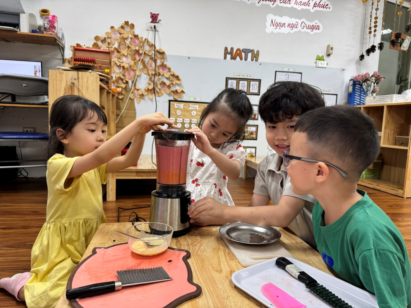 Không chỉ là hoạt động vui chơi, đây còn là cơ hội để các con rèn luyện sự khéo léo, tính tự lập và cả tinh thần hợp tác cùng nhau. Bạn nhỏ nào cũng háo hức, chăm chú và thật tự hào khi được thưởng thức chính thành phẩm của mình.