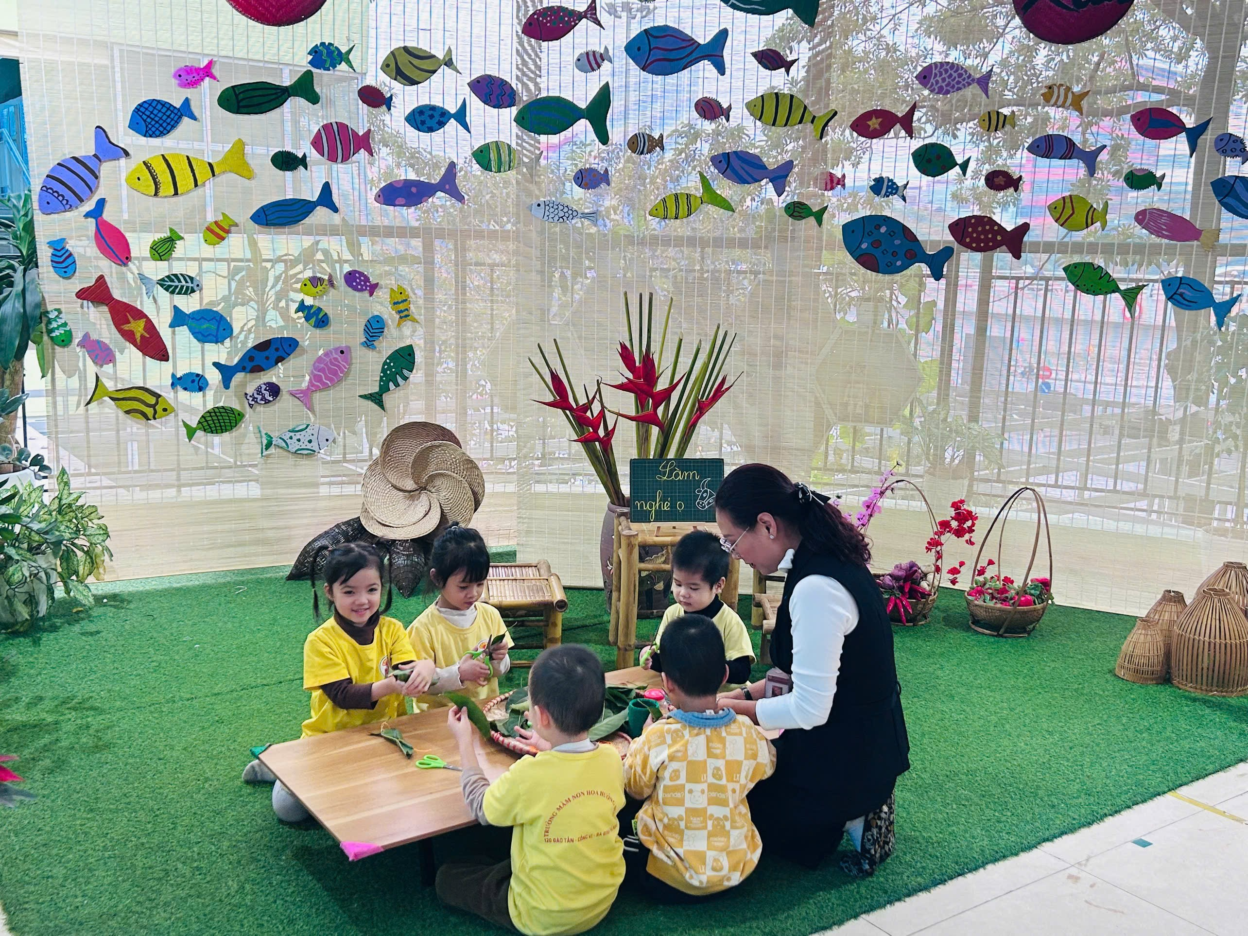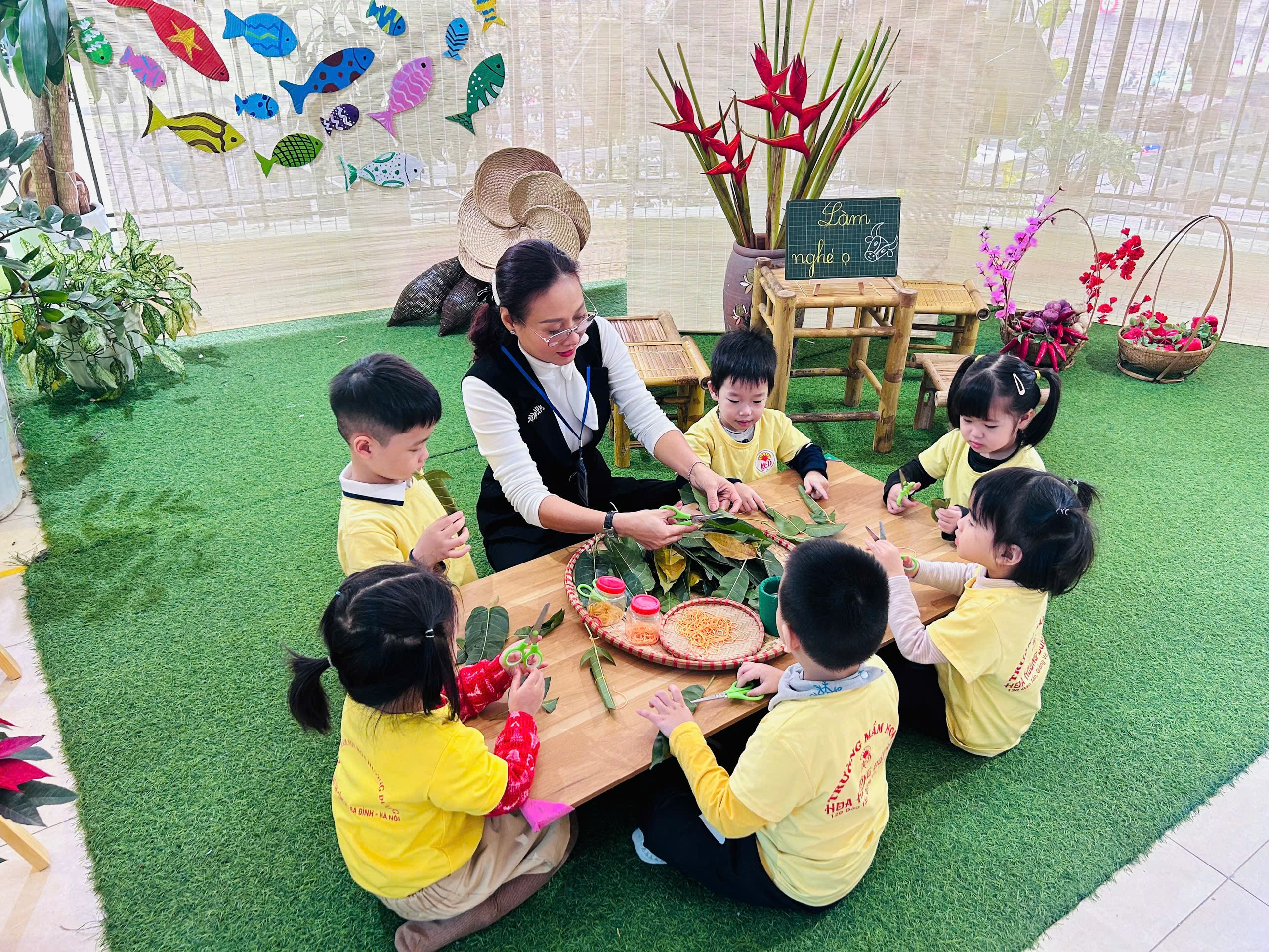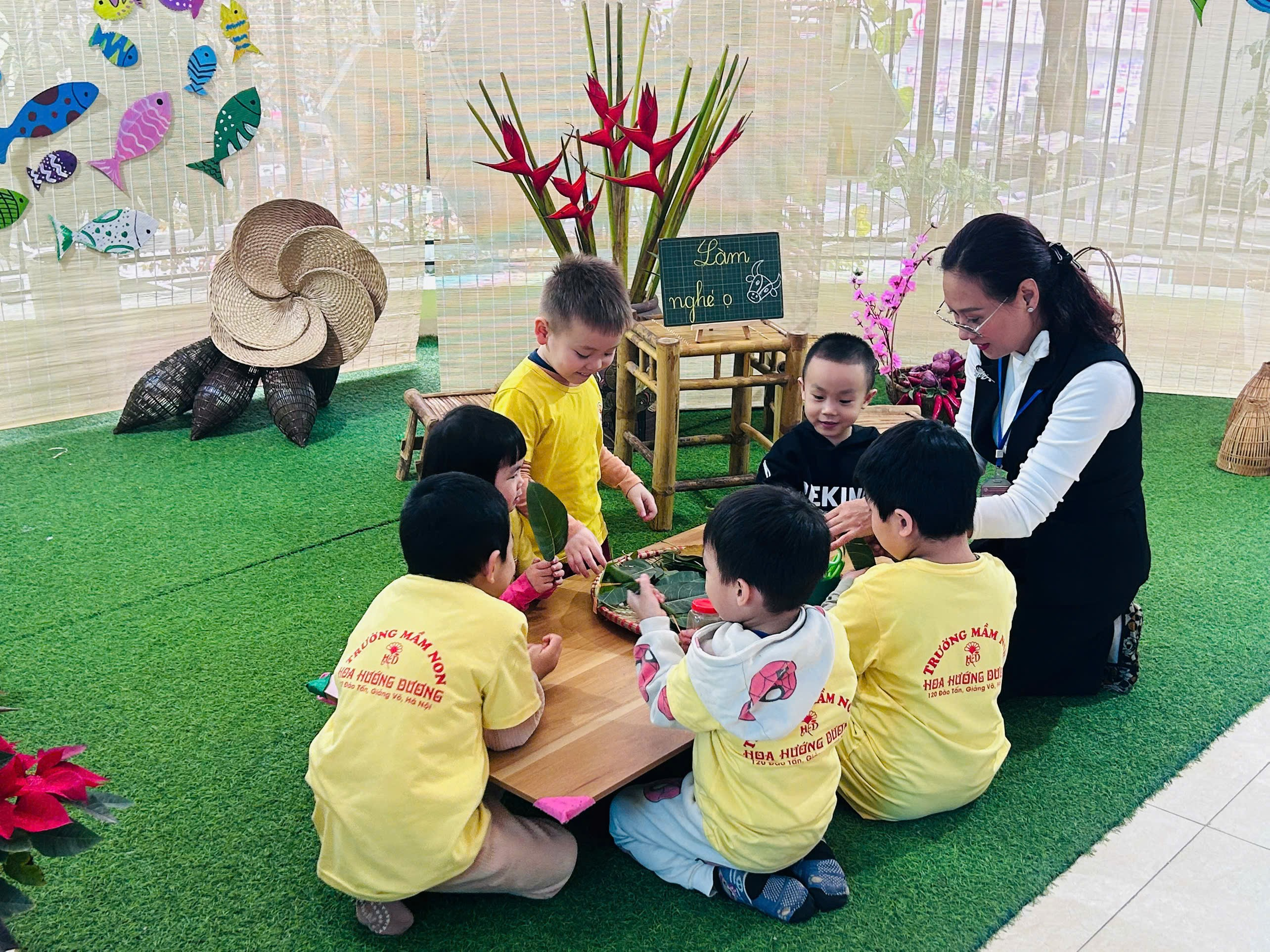 Hoạt động làm đồ chơi dân gian từ lá của các bé lớp B2 đã mang đến những khoảnh khắc học tập nhẹ nhàng, ý nghĩa và giàu cảm xúc. Trường Mầm non Hoa Hướng Dương luôn chú trọng tổ chức các hoạt động trải nghiệm, góp phần gìn giữ và lan tỏa nét đẹp tuổi thơ Việt trong mỗi em nhỏ.