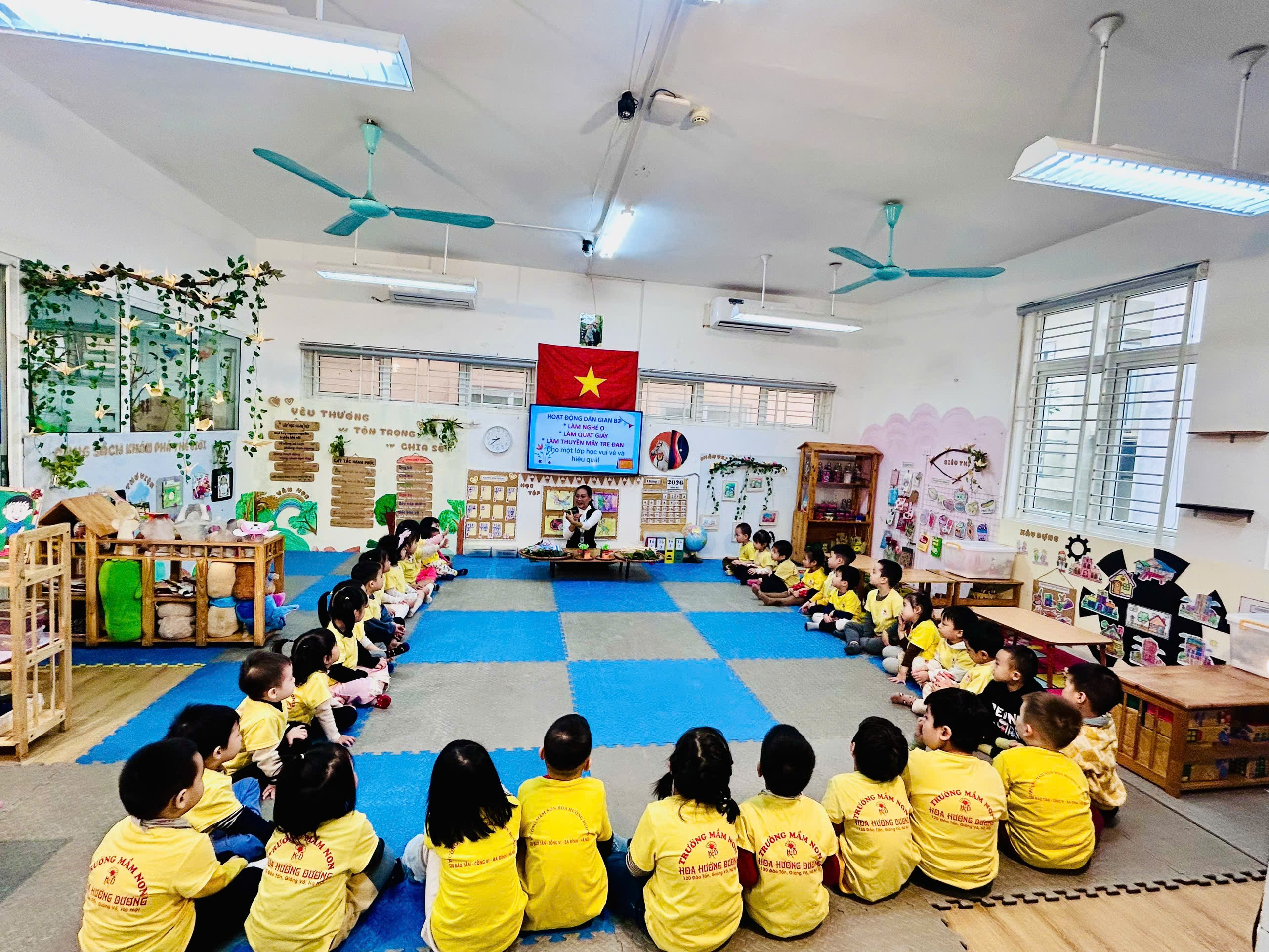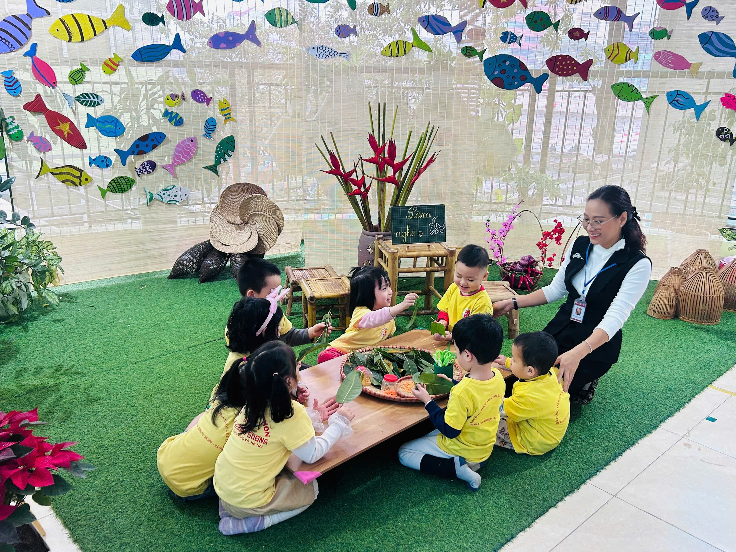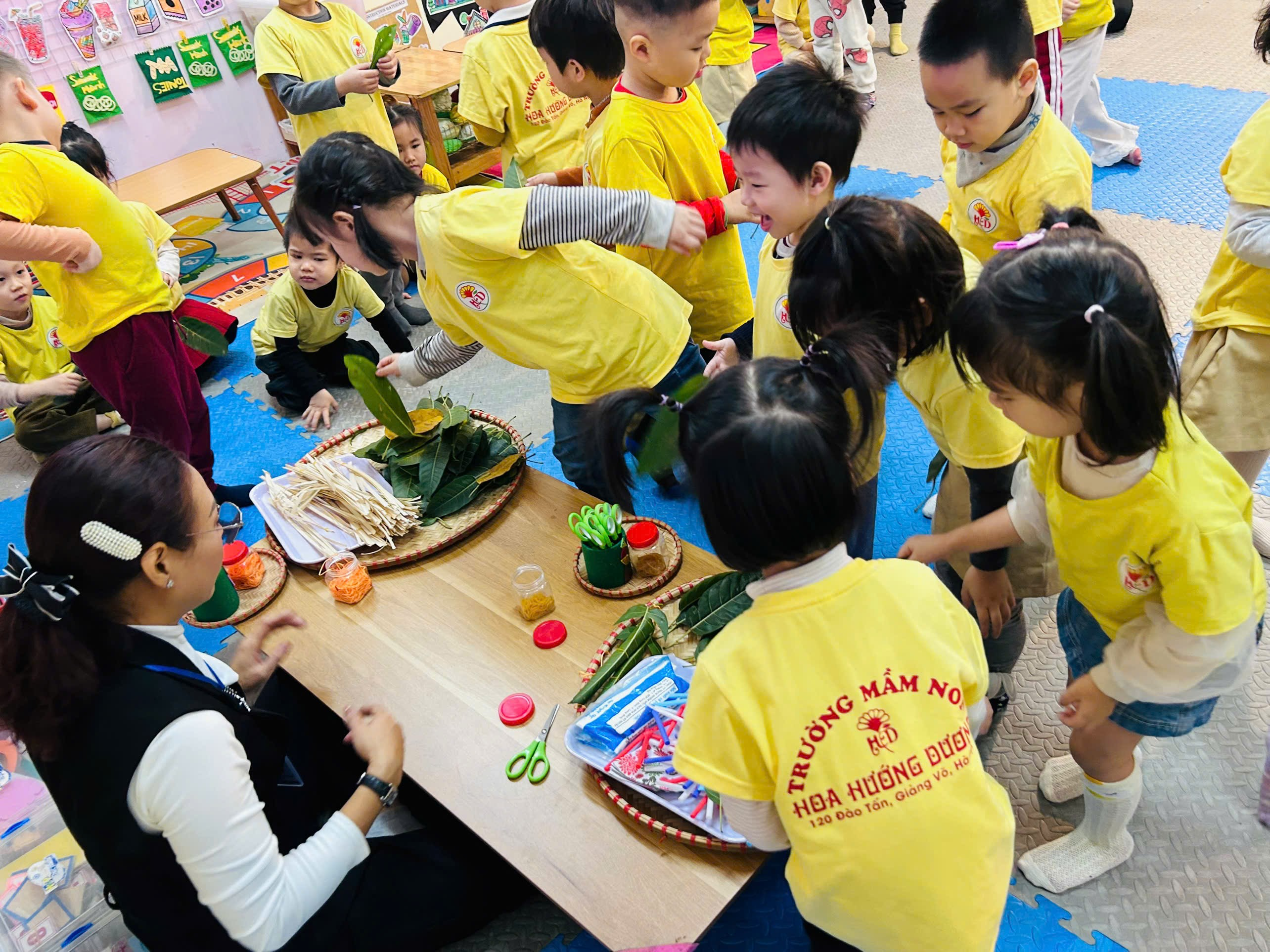 Hoạt động làm đồ chơi dân gian từ lá của các bé lớp B2 đã mang đến những khoảnh khắc học tập nhẹ nhàng, ý nghĩa và giàu cảm xúc. Trường Mầm non Hoa Hướng Dương luôn chú trọng tổ chức các hoạt động trải nghiệm, góp phần gìn giữ và lan tỏa nét đẹp tuổi thơ Việt trong mỗi em nhỏ.