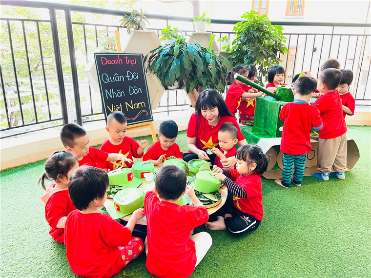 Hoạt động Chào mừng ngày Thành lập Quân đội nhân dân Việt Nam 22/12 của các bé lớp Mẫu giáo bé C2