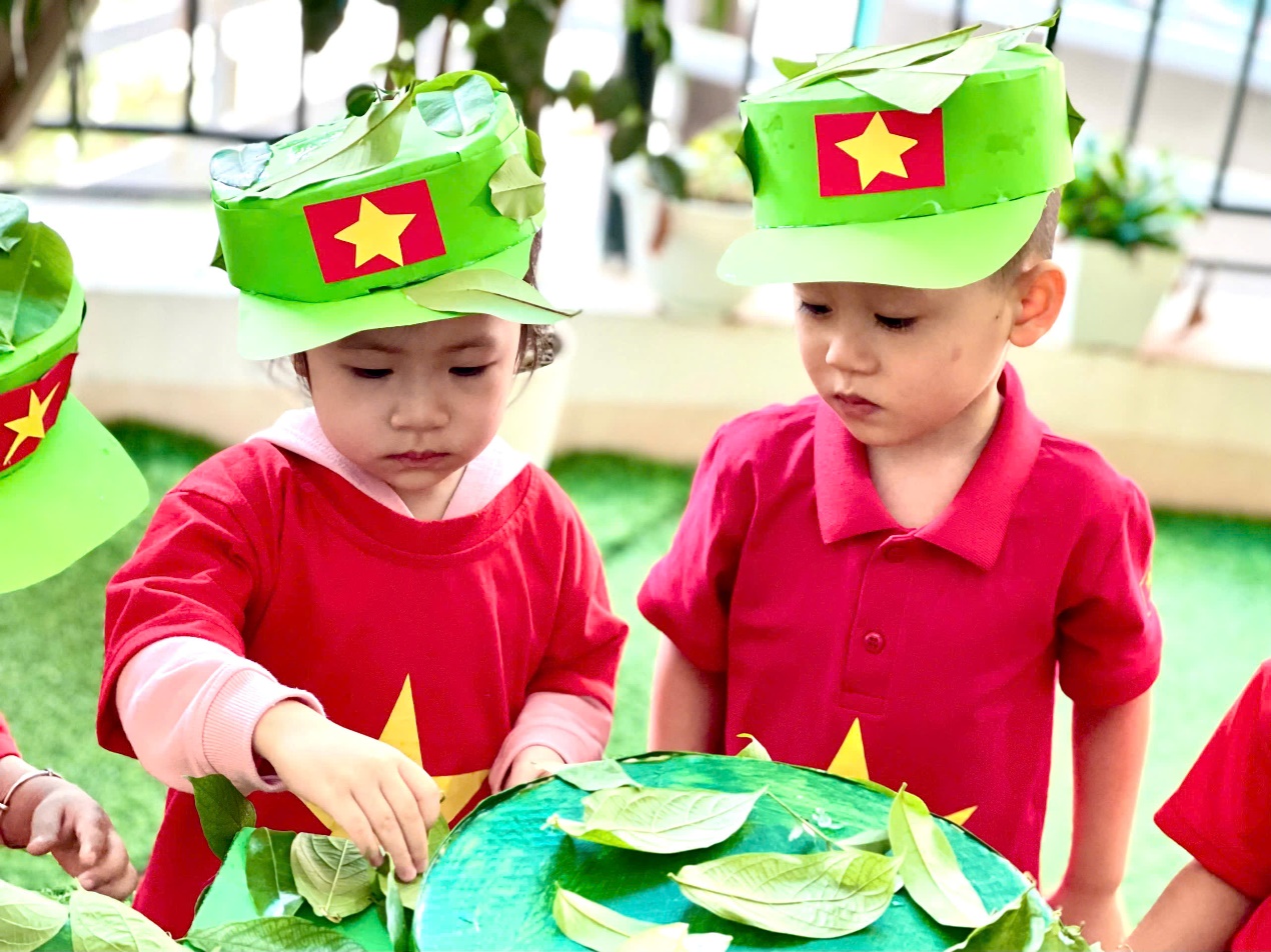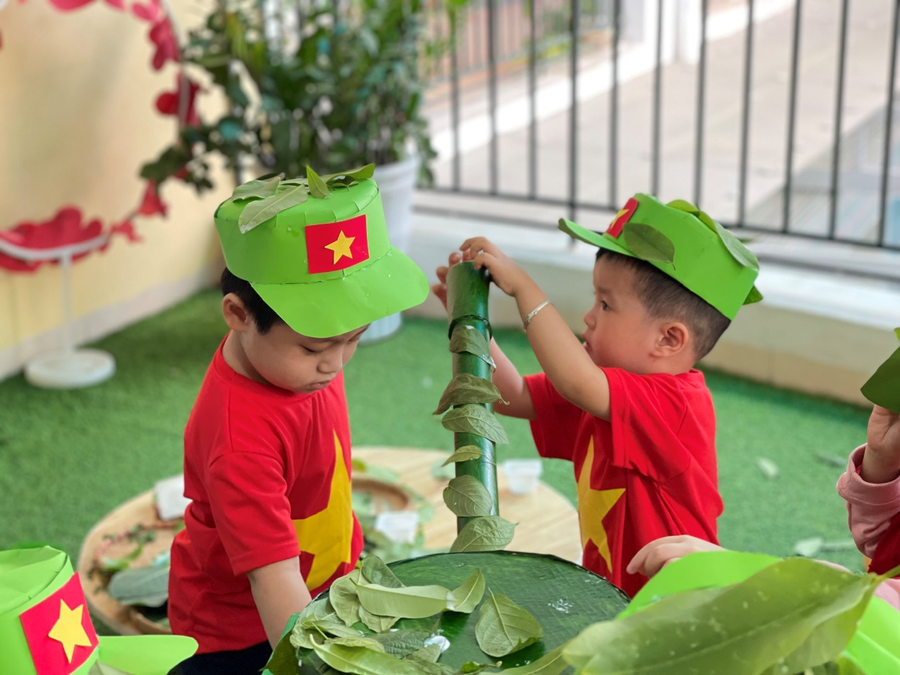 Hòa chung với không khí tưng bừng của cả nước chào mừng 80 năm ngày thành lập Quân đội nhân dân Việt Nam (22/12/1944 - 22/12/2024) cô trò lớp Mẫu giáo bé C2 Trường Mầm non Hoa Hướng Dương tổ chức hoạt động trải nghiệm ngụy trang xe tăng và mũ bộ đội.