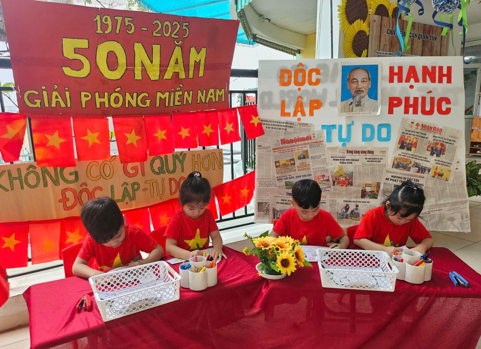 Hoà trong không khí hân hoan kỷ niệm 50 năm ngày Giải phóng miền Nam, thống nhất đất nước (30/4/1975 - 30/4/2025), các bé lớp MGN B1 được tham gia hoạt động tạo hình “Làm mũ kỷ niệm” trong ngày lễ trọng đại. Đây là dịp các bé để thể hiện lòng yêu nước, niềm tự hào dân tộc.