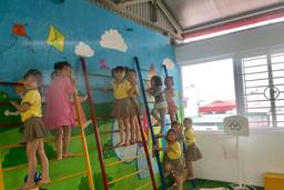 Cho trẻ tưới nước, nhặt lá vàng cho cây rau