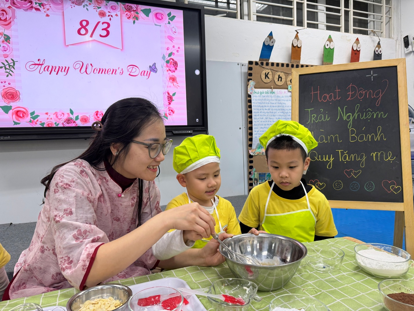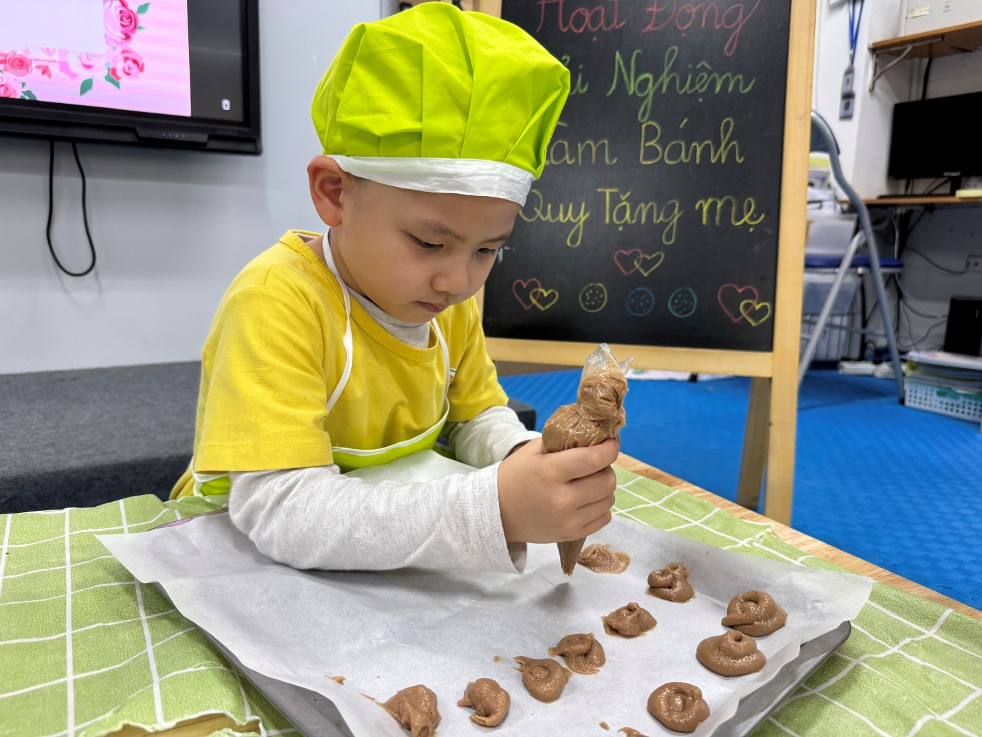 Hoạt động làm bánh không chỉ giúp bé học hỏi thêm nhiều điều mới mà còn giúp bé hiểu về tình yêu thương, sự quan tâm dành cho mẹ. Đây cũng là dịp để bé thể hiện lòng biết ơn đến người mẹ kính yêu của mình.