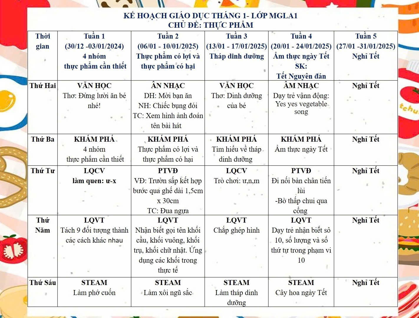 KẾ HOẠCH GIÁO DỤC THÁNG 1 - LỚP MGL A1.