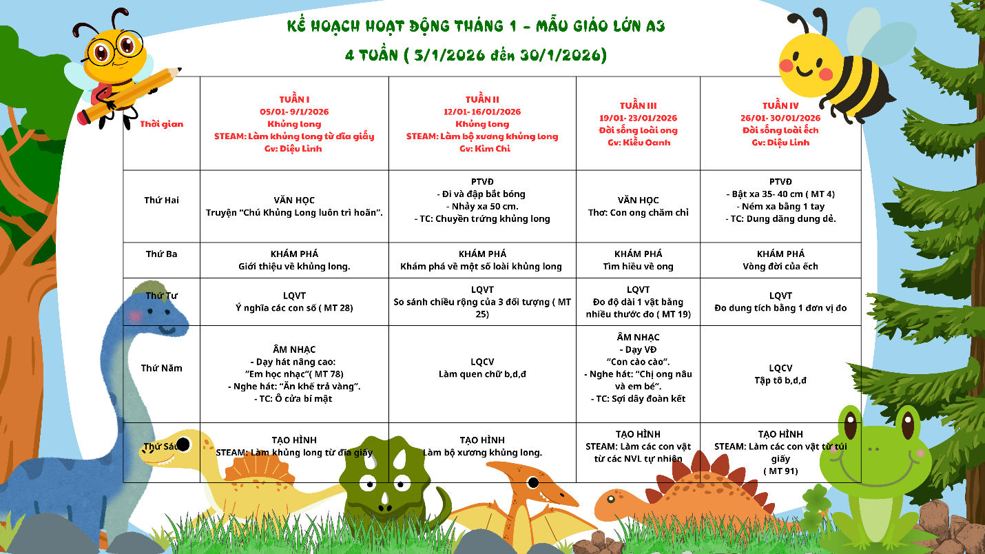 KẾ HOẠCH HOẠT ĐỘNG THÁNG 1 – MẪU GIÁO LỚN A3