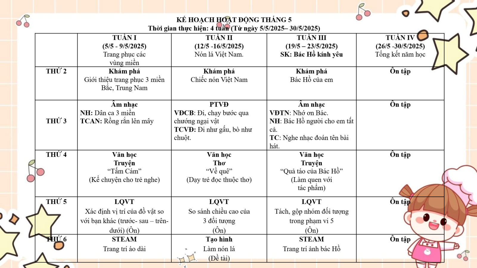 Kế hoạch hoạt động giáo dục lớp MGL A2