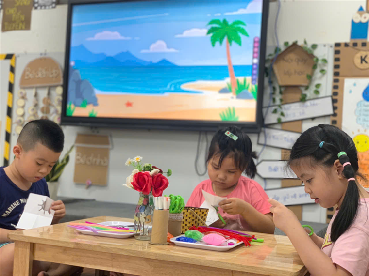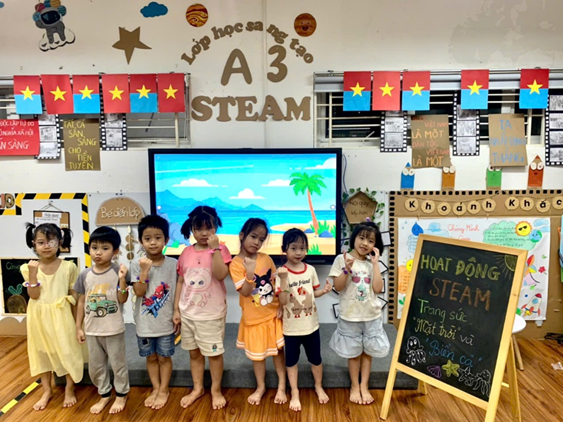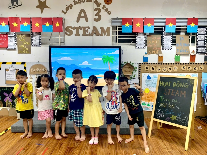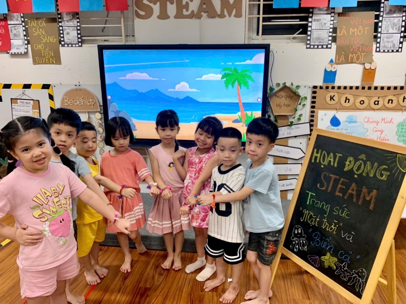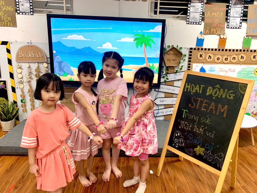 Các bạn nhỏ lớp Mẫu giáo lớn A3 trường Mầm non Hoa Hướng Dương vừa có một buổi học thật thú vị và bổ ích với hoạt động STEAM mang tên "Làm trang sức mặt trời và biển cả". Hoạt động này không chỉ giúp các bé phát huy sự sáng tạo, khéo léo mà còn khơi gợi niềm yêu thích khám phá khoa học, công nghệ, kỹ thuật, nghệ thuật và toán học ngay từ lứa tuổi mầm non.