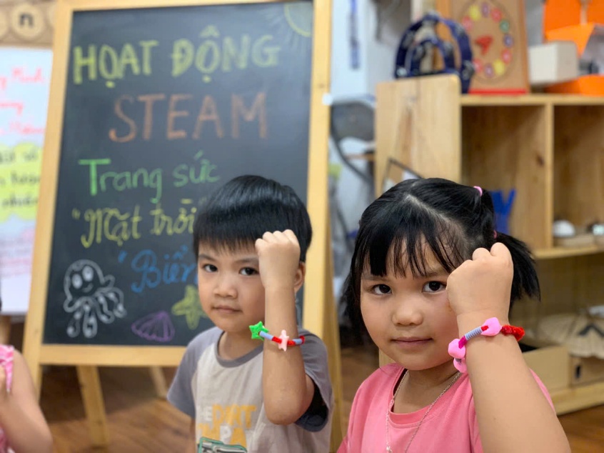 "Lấp lánh niềm vui, rực rỡ sáng tạo" các bé Mẫu giáo lớn A3 làm trang sức, vòng tay Mặt trời độc đáo từ những vật liệu đơn giản, khám phá thế giới STEAM đầy màu sắc!