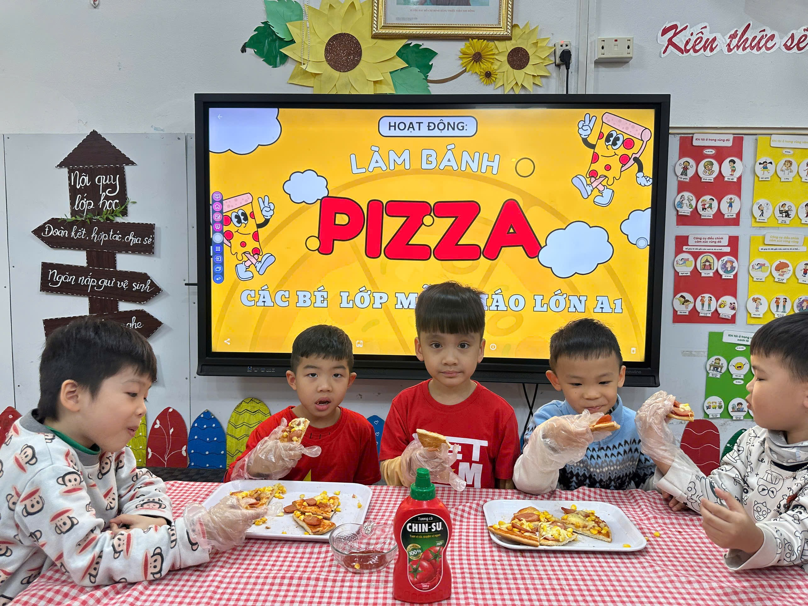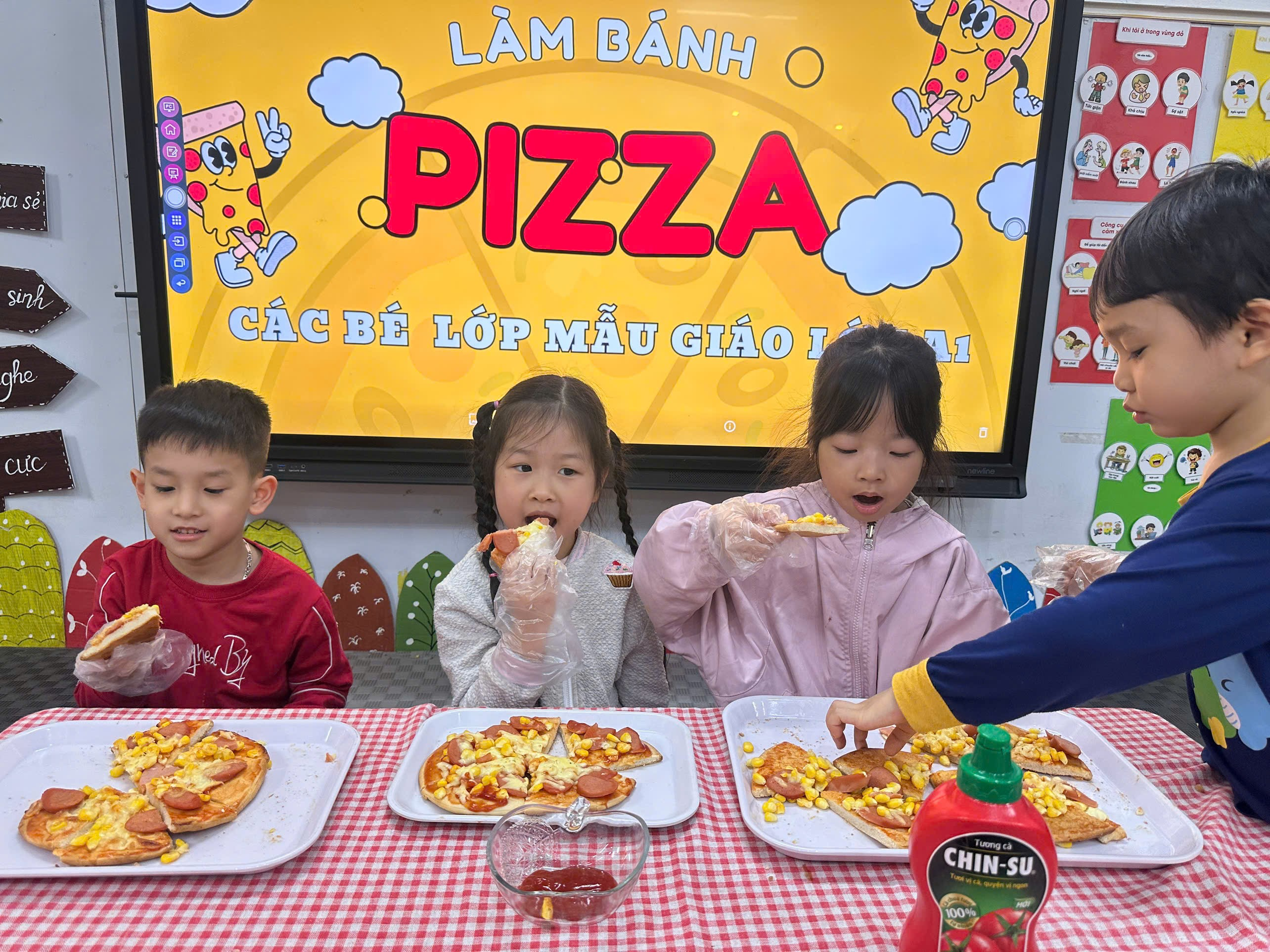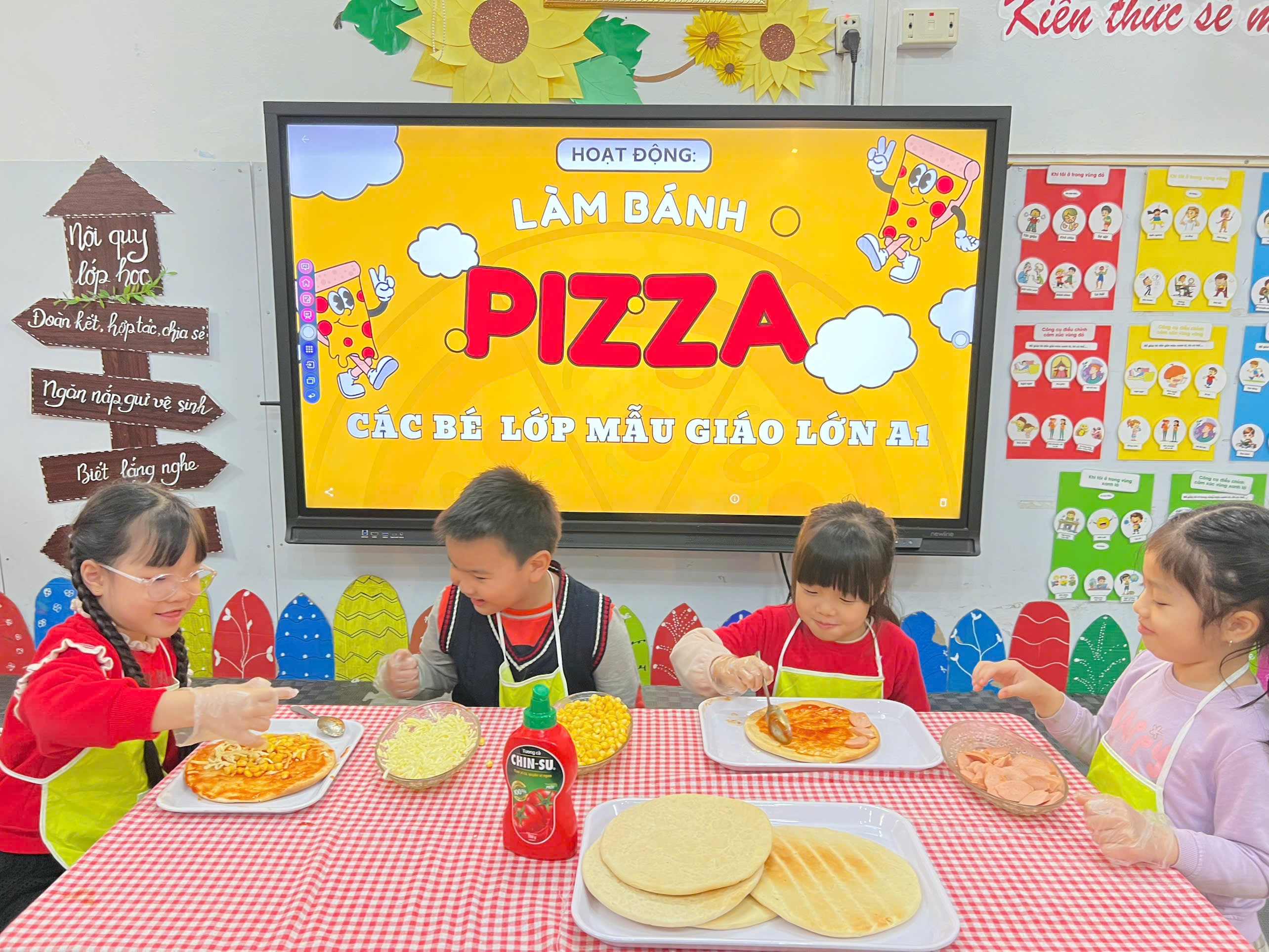Với mong muốn giúp trẻ học tập thông qua trải nghiệm thực tế, các bé lớp Mẫu giáo lớn A1 Trường Mầm non Hoa Hướng Dương đã có một ngày vào bếp đầy hứng khởi, cùng nhau làm nên những chiếc pizza thơm ngon từ chính đôi bàn tay nhỏ bé của mình.