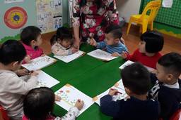 Các bé lớp nhà trẻ trong hoạt động học tạo hình