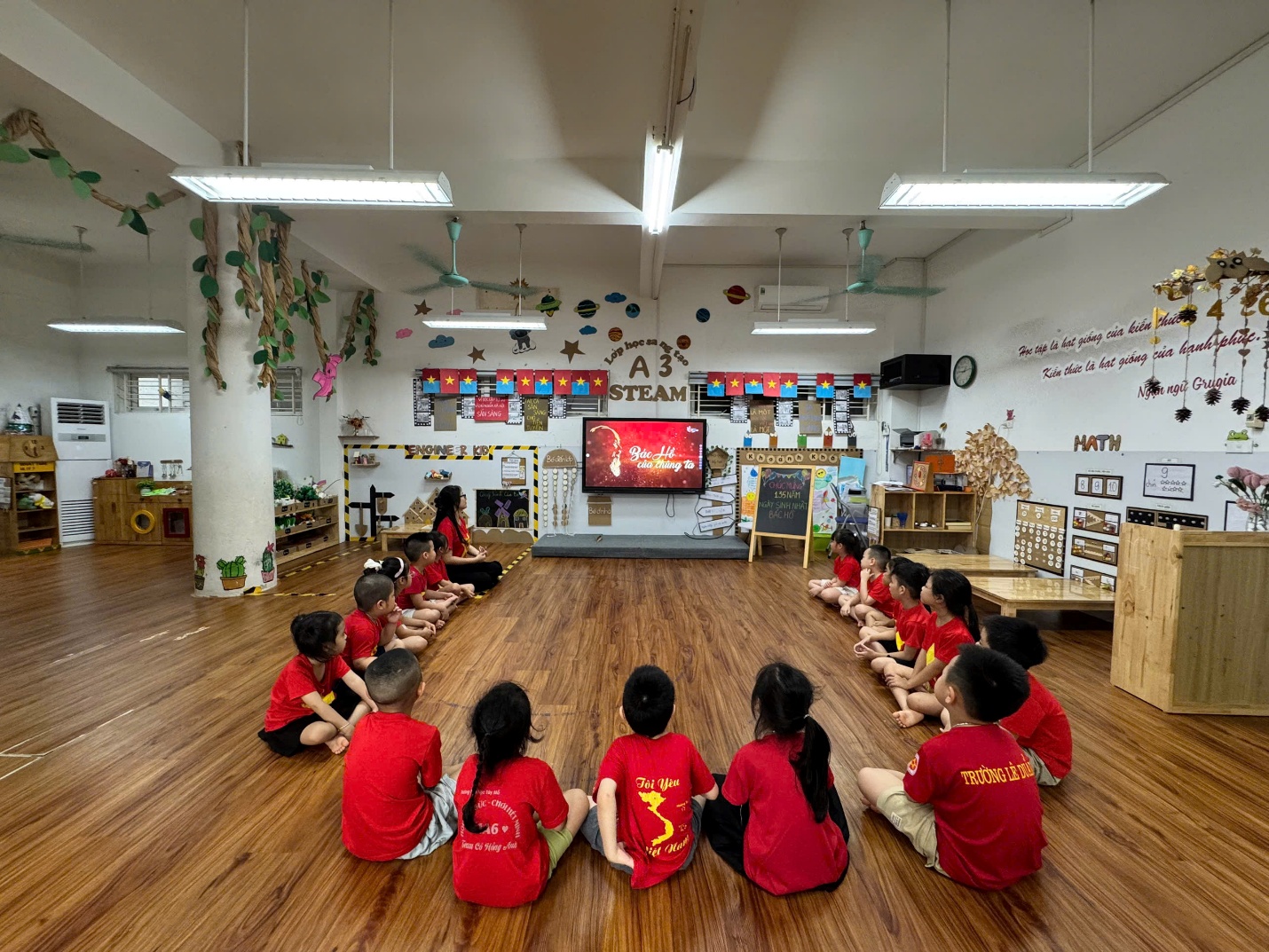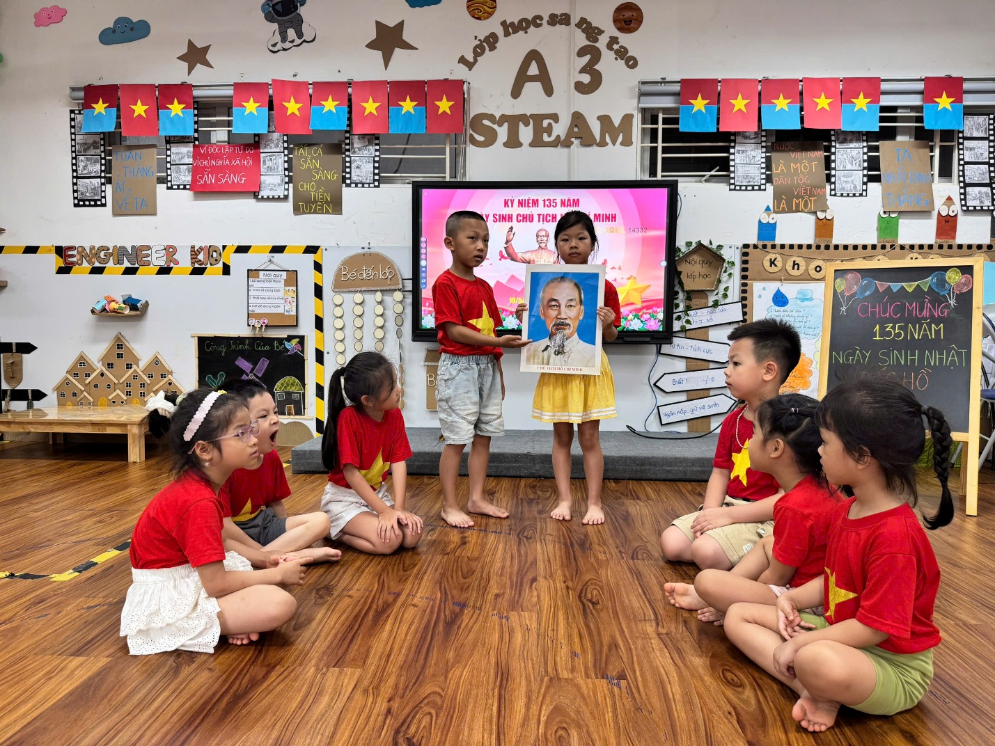 Dưới sự hướng dẫn của cô giáo, các bé đã được nghe kể chuyện, xem tranh và cùng nhau tìm hiểu về Bác Hồ – vị cha già dân tộc, người luôn dành tình yêu thương đặc biệt cho thiếu nhi. Dù còn nhỏ, nhưng qua ánh mắt chăm chú và những câu hỏi ngây thơ, có thể cảm nhận được tình cảm kính yêu chân thành mà các con dành cho Bác.