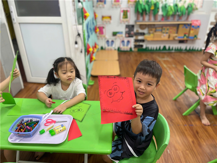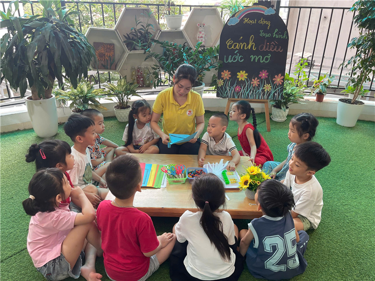 Trong buổi hoạt động đầy hứng khởi này, các bé được hóa thân thành những nghệ sĩ tí hon, thỏa sức thể hiện tài năng của mình thông qua hoạt động tạo hình "Cánh diều ước mơ".