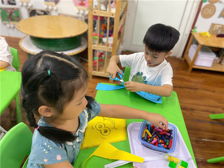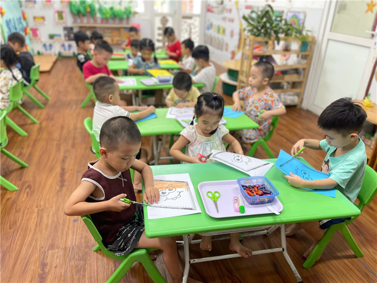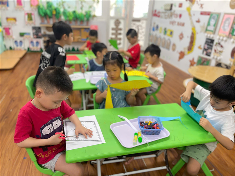 Với đôi bàn tay nhỏ xinh, các bé cầm những cây bút màu, tô màu một cách tỉ mỉ, cẩn thận, biến tờ giấy trắng thành bầu trời. Từ màu xanh của biển cả, màu vàng của nắng hè với sự hướng dẫn tận tình của cô giáo, các bé sẽ học cách sử dụng kéo khéo léo khi cắt đường viền, tạo nên những hình thù ngộ nghĩnh để dán lên cánh diều.