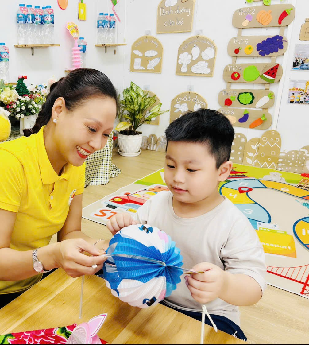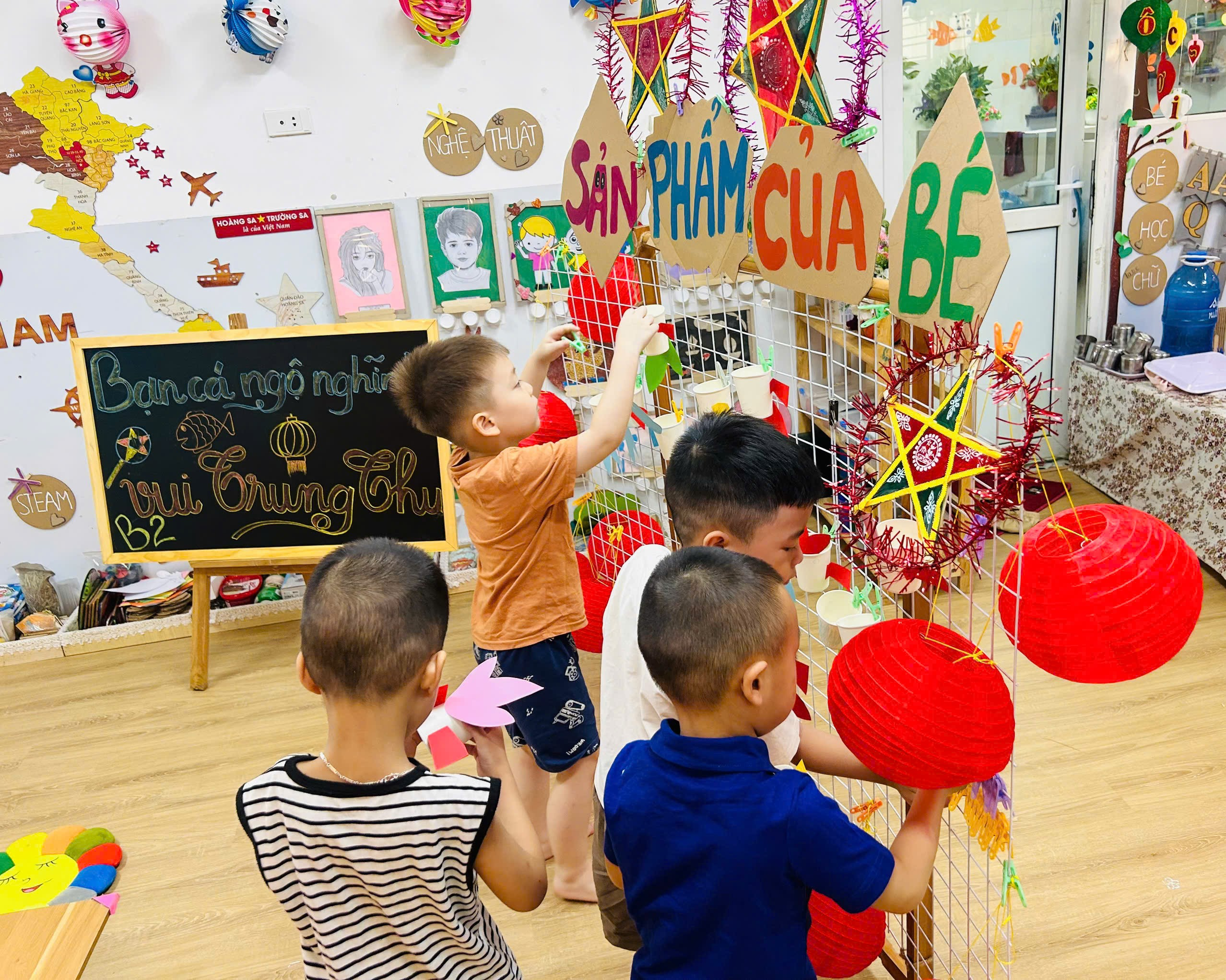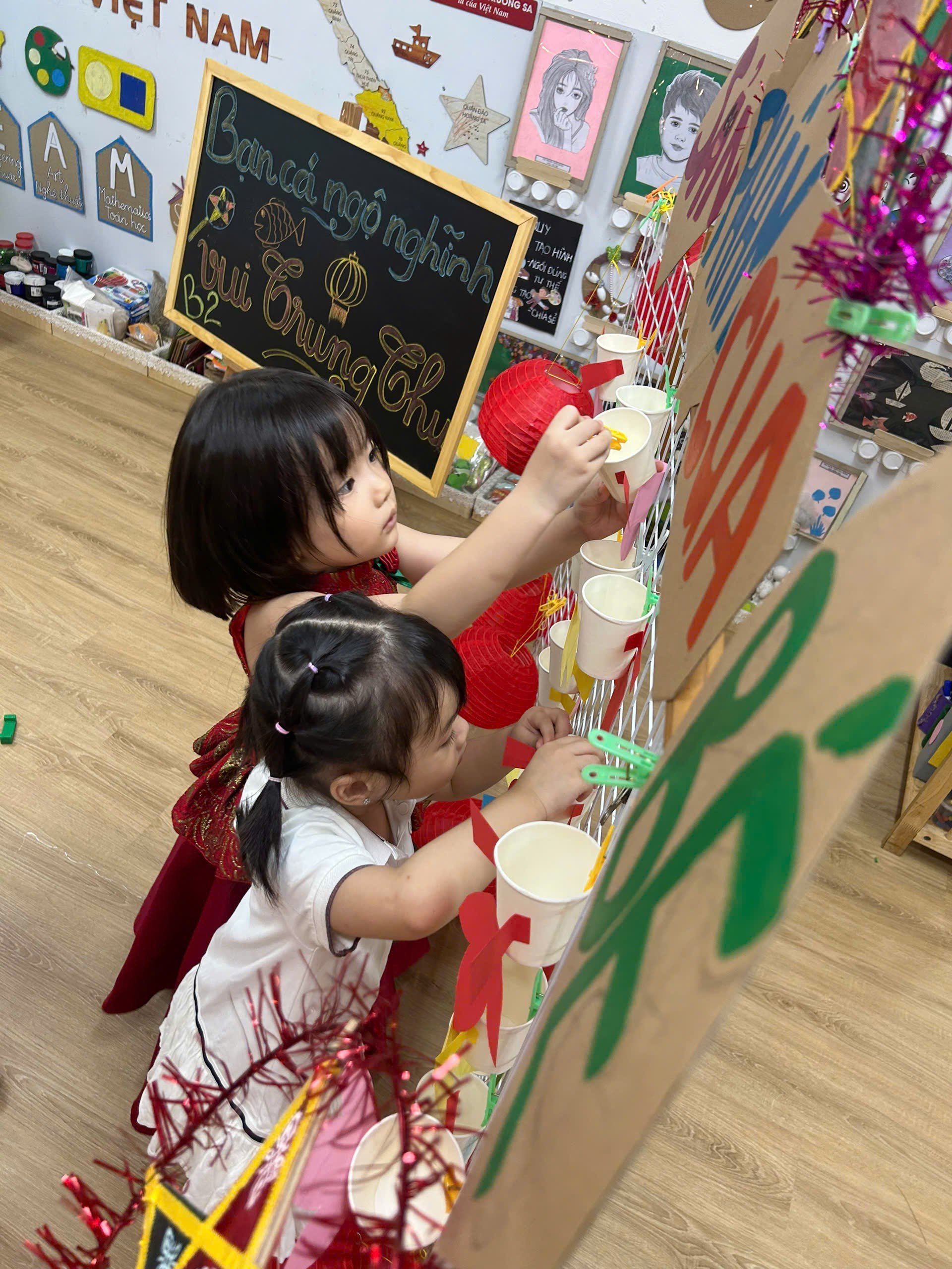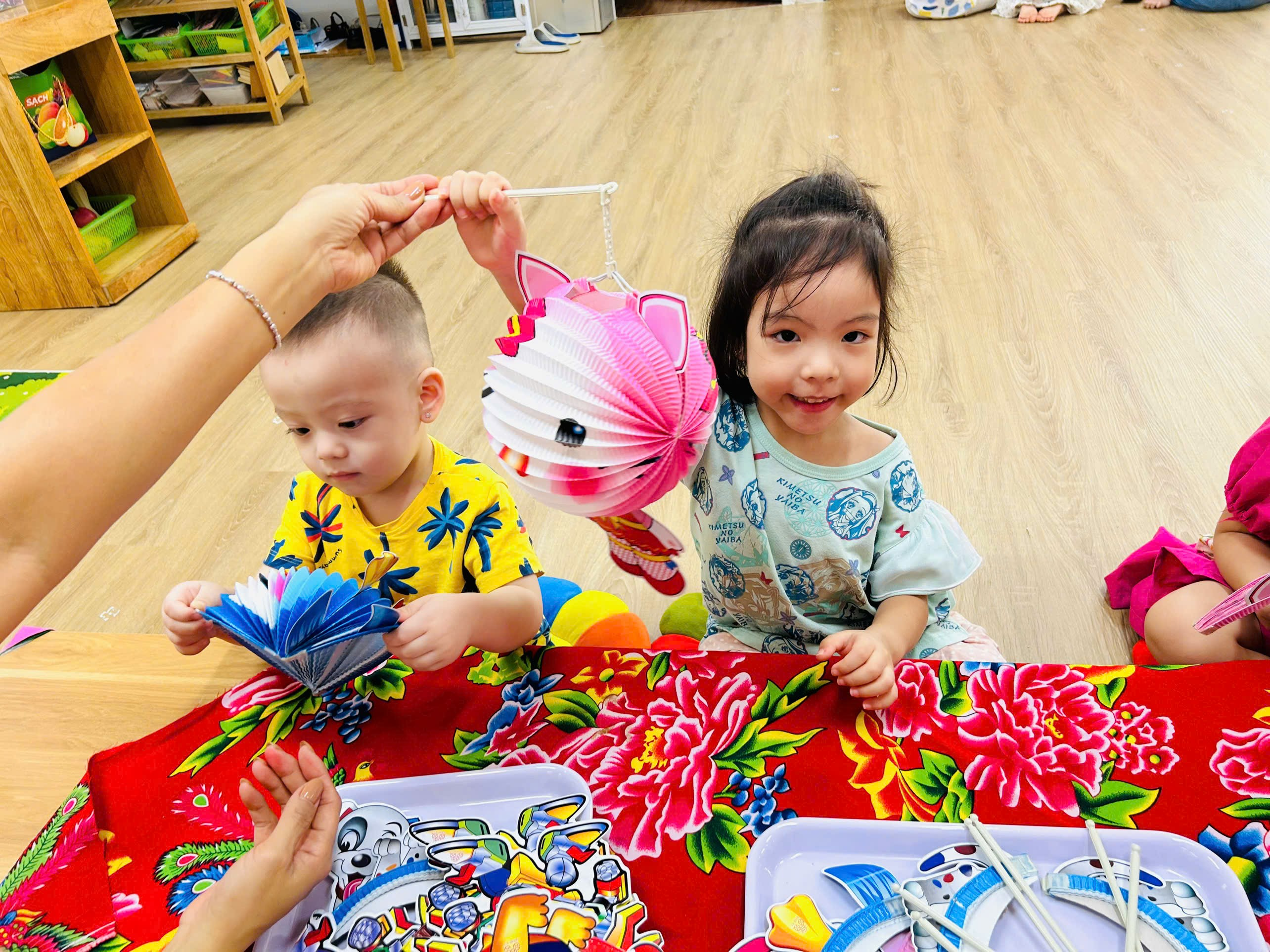 Mỗi chiếc đèn lồng là một tác phẩm sáng tạo độc đáo: có chiếc đỏ thắm tượng trưng cho niềm vui, có chiếc vàng tươi rực rỡ như ánh trăng. Không chỉ dừng lại ở việc tạo hình, các bé còn được chia sẻ ý nghĩa của chiếc đèn lồng – biểu tượng cho tình đoàn viên, cho sự gắn kết gia đình và tuổi thơ trọn vẹn yêu thương.
